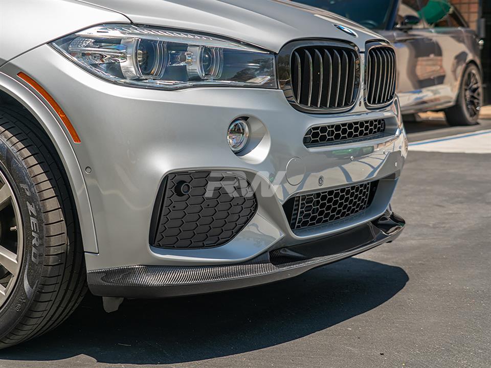 RW Carbon is proud to offer this beautiful carbon fiber front lip spoiler for our BMW F15 X5 M Sport owners. This 3D style front lip is made using genuine carbon fiber in a 2×2 weave pattern. This pattern will match other RW Carbon parts or any carbon fiber from OEM BMW. This front lip easily installs using self tapping screws and can be done at a professional shop in about 1-1.5 hours. The self tapping screws will be included with purchase. Each piece is inspected, polished and shipped out of our Anaheim CA warehouse. RW can also install your front lip here in under an hour. If you would like a quote please contact us. Get yourself one of these 3D style front lips today and see the difference it will make on your BMW F15 X5 for yourself.