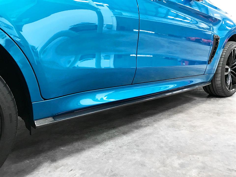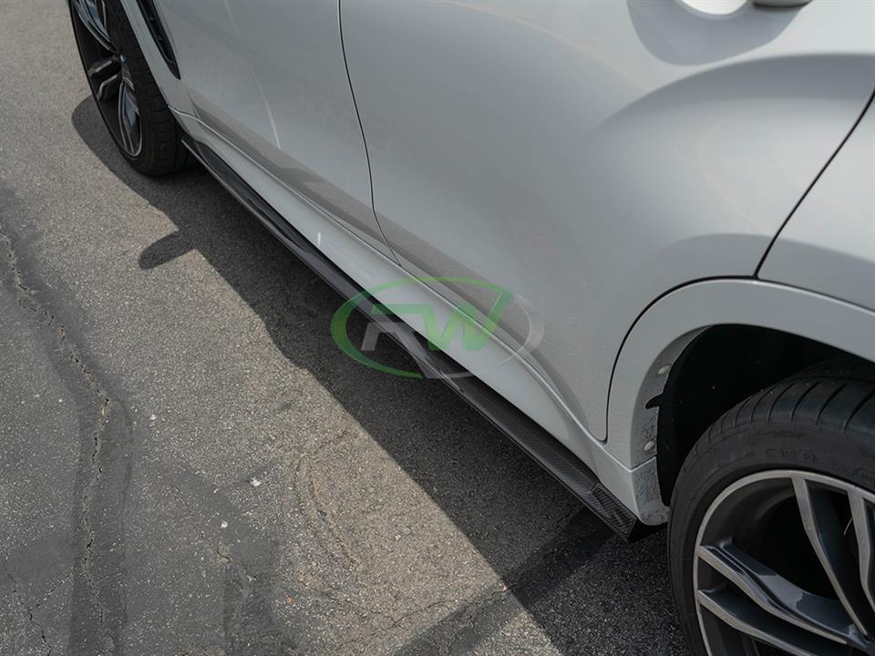 Complete the exterior carbon fiber accented look on your BMW F16 X6 or F86 X6M with these carbon fiber side skirt extensions. These RW carbon CF extensions feature 2×2 genuine carbon fiber construction that will match our front lips and diffusers, as well as all OEM BMW CF parts. Installation is purely bolt-on and can be completed in under 1 hour. These F16 X6/F86 X6M carbon fiber side skirts install via self-tapping screws. Fits all 2014-2018 X6 M Sport as well as 2015-2019 F86 X6M applications. No need to worry about fading or discoloration as we complete all side skirt extensions with a UV-inhibiting clearcoat. Buy with confidence – All RW parts come with our fitment and quality guarantee.