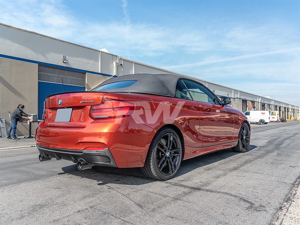 Professional installation is always recommended for RW Carbon’s products including this Exotics Tuning style F22/F23 diffuser. For proper installation the rear bumper MUST be removed. If you are local to us please let us install it for you. There is no better shop to have it installed.