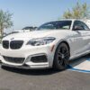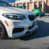Professional installation is recommended for this carbon fiber 2 series front lip. All that is required is a drill and self-tapping screws (which we include for you), but you will need access to the bottom of the car so a lift or ramps are a must. We welcome all local customers to come down to our shop to get the lip installed. Give us a call today for a quote.