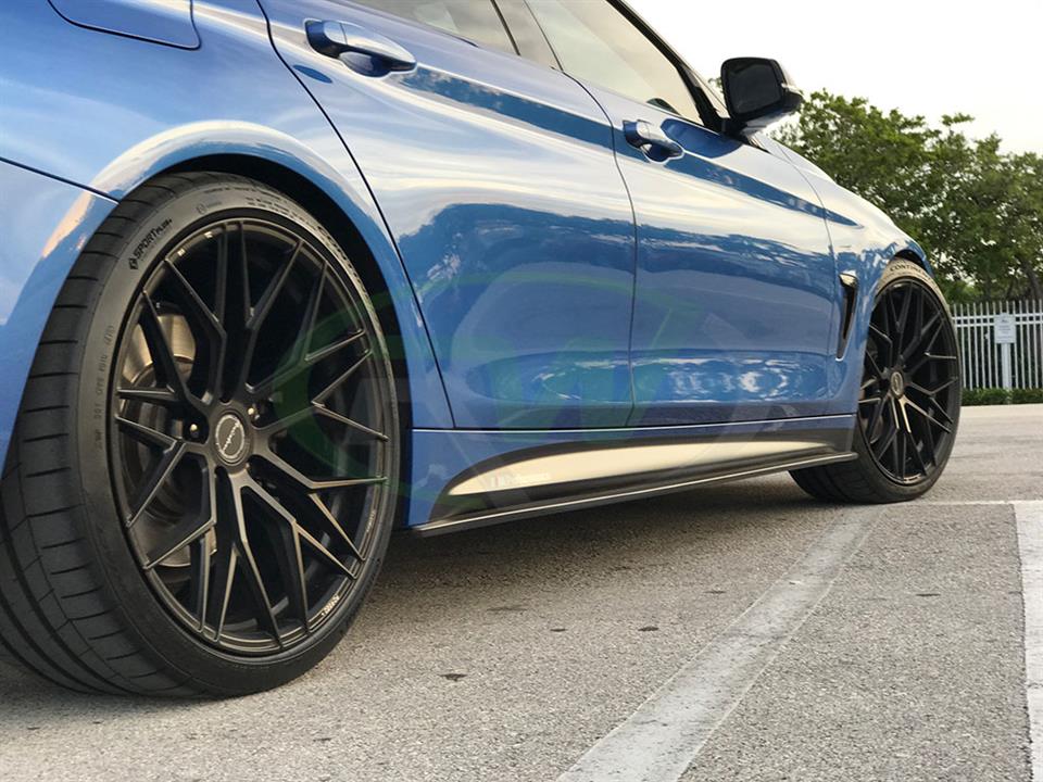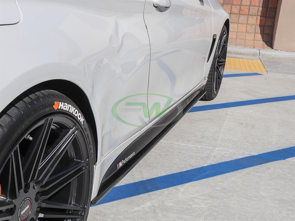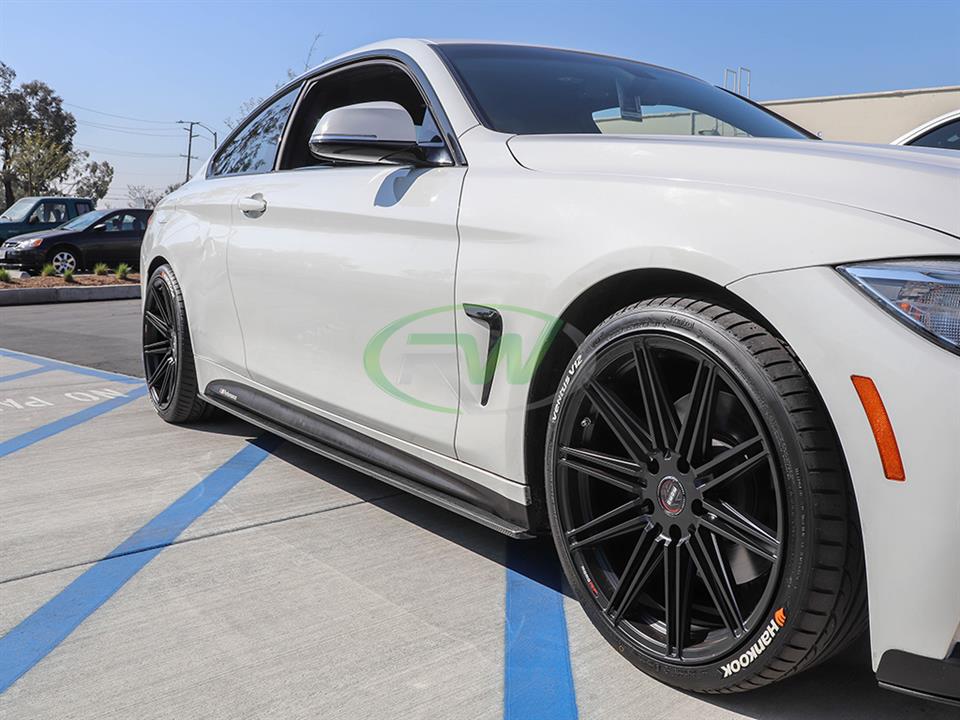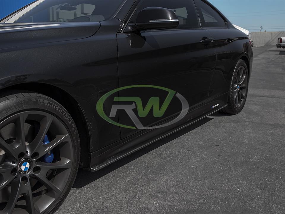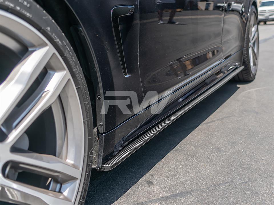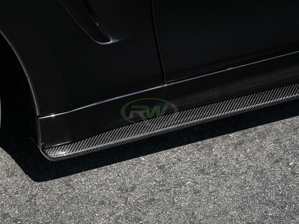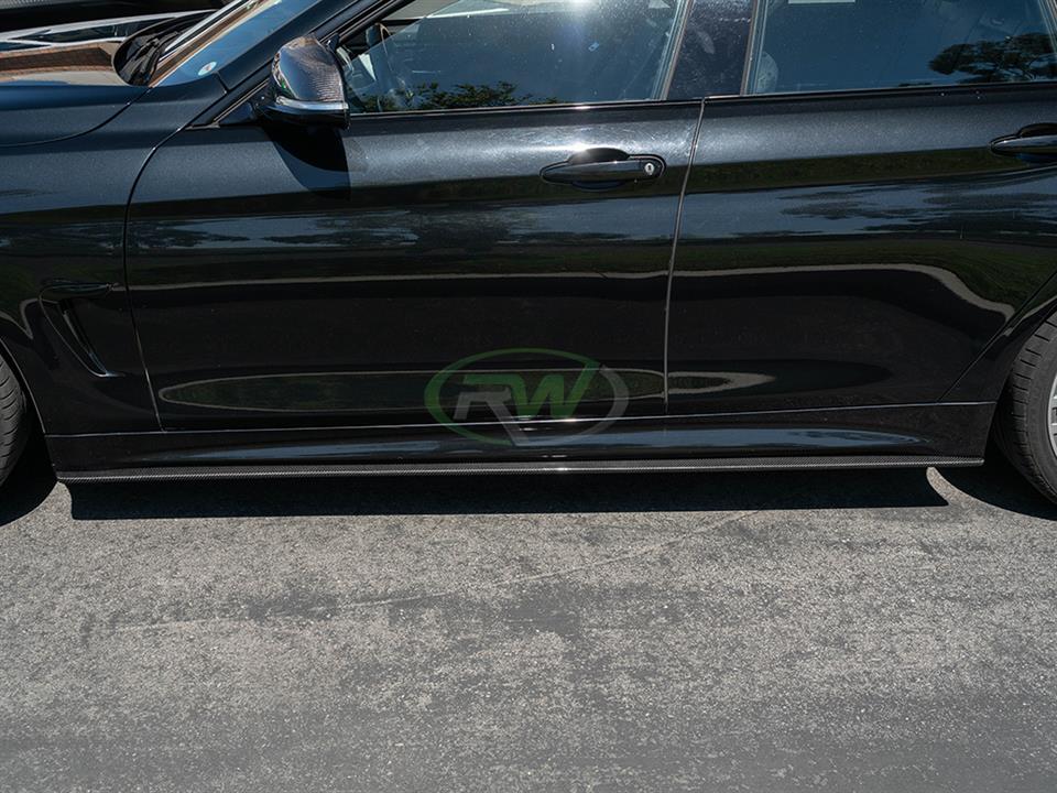 Complete the exterior appearance of your F32, F33, or F36 4 series with these 3D style carbon fiber side skirt extensions. These carbon fiber side skirt extensions mount to your existing side skirts for an improved aero appearance. Featuring 2×2 carbon fiber weave this item will match any and all other carbon fiber parts you have on your car. Fits 2014+ 428i, 430i, 435i and 440i with M sport package only (coupe, convertible, gran coupe). Installation can be done in under 1 hour and is completed through the use of self tapping screws. Give your 4 series that carbon fiber accent piece that not many others have with these BMW F32/F33/F36 3D style carbon fiber side skirt extensions from RW Carbon.
