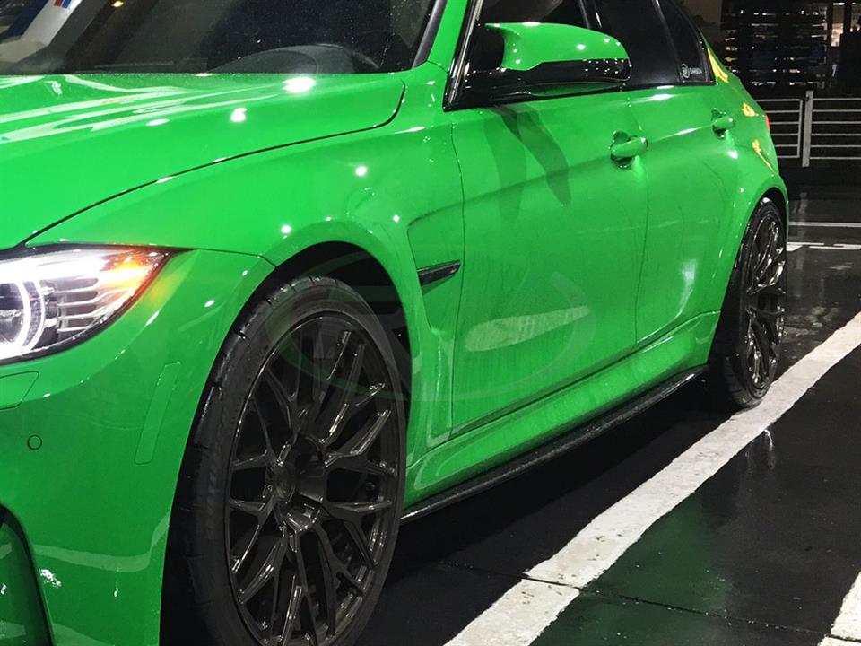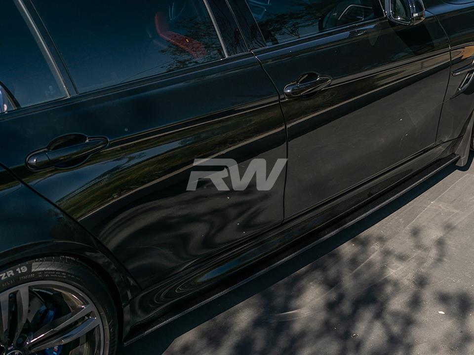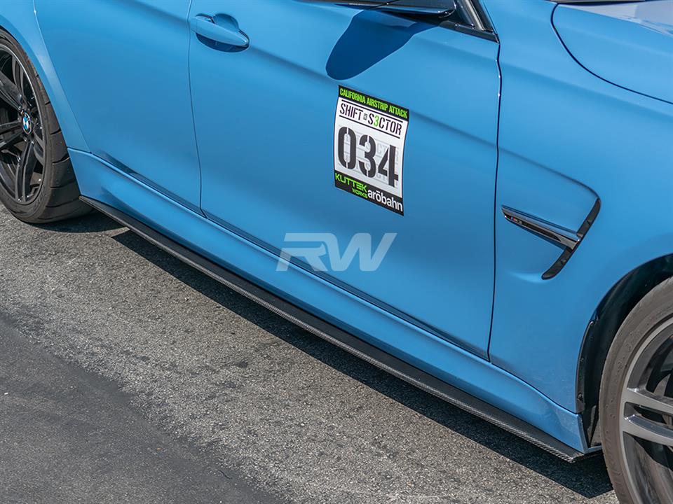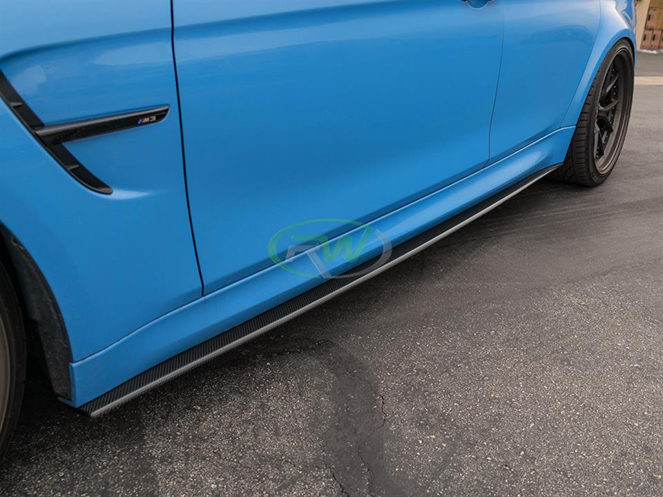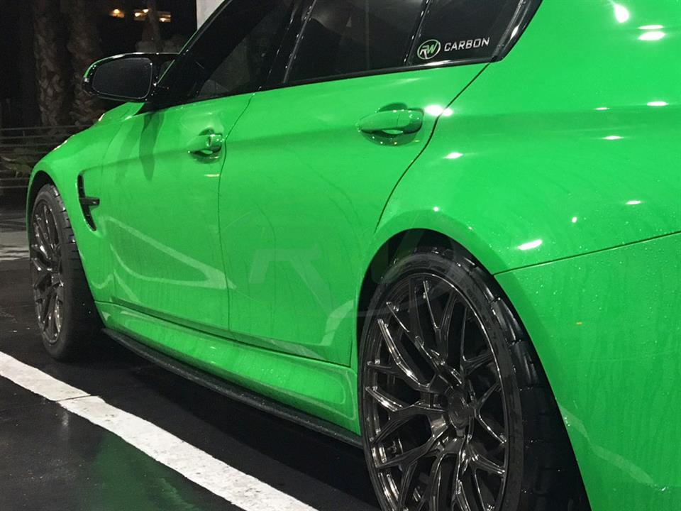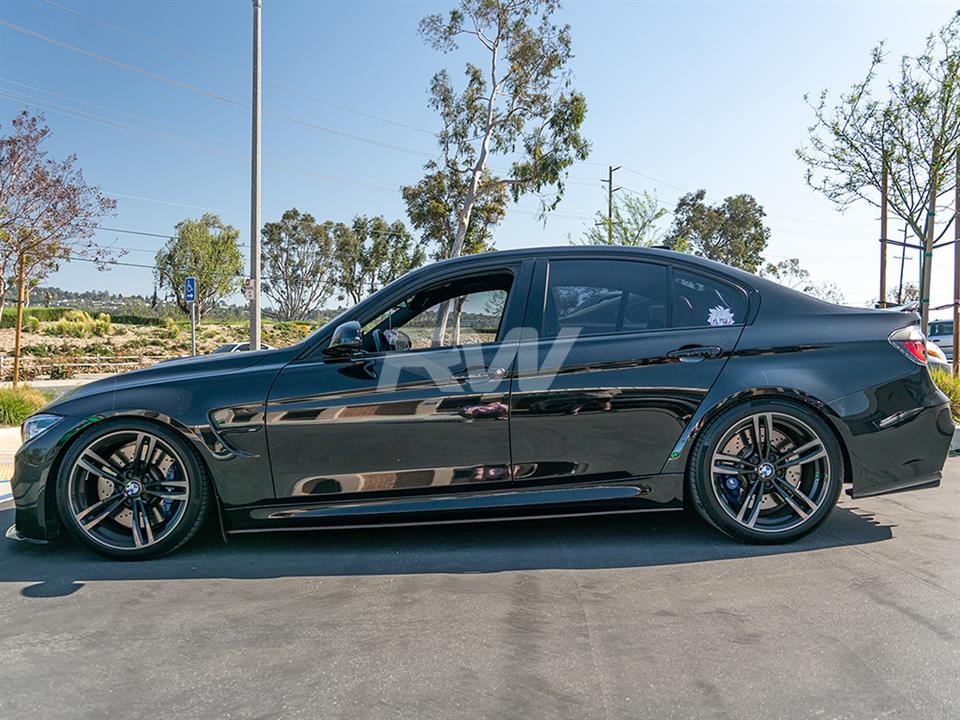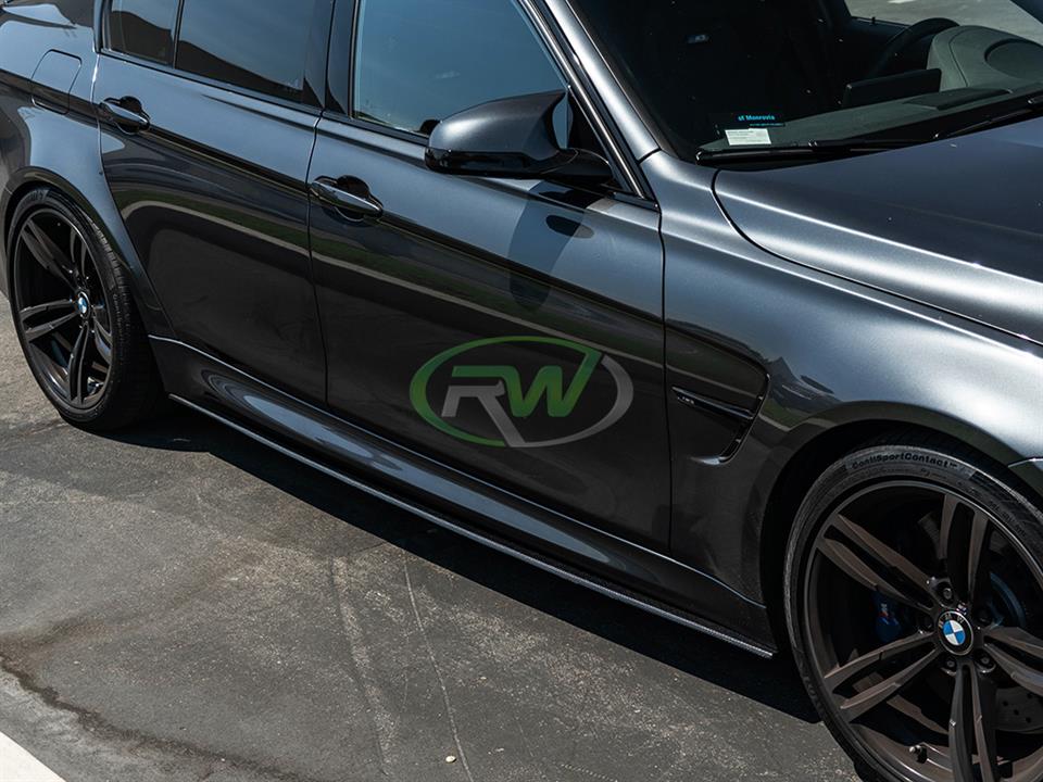 Carbon fiber side skirt extensions are a absolute must have to complete your RW Carbon aero kit! These BMW F80 M3 side skirt extensions are our most modest looking and priced option. However, they are still made using our high quality materials and will pair great other less aggressive front lip and diffuser. If you need help deciding on which parts these will pair best with please give one of our carbon fiber experts a call. We hand craft each set of F80 M3 carbon fiber side skirt extensions with 3k 2×2 carbon fiber and complete them with UV resistant clear coat to ensure they do not fade or discolor. Installation can be completed by any enthusiast and just requires self-tapping screws. Get a high quality and great fitting set of F80 M3 carbon fiber side skirt extensions the first time when you order your set through RW Carbon.