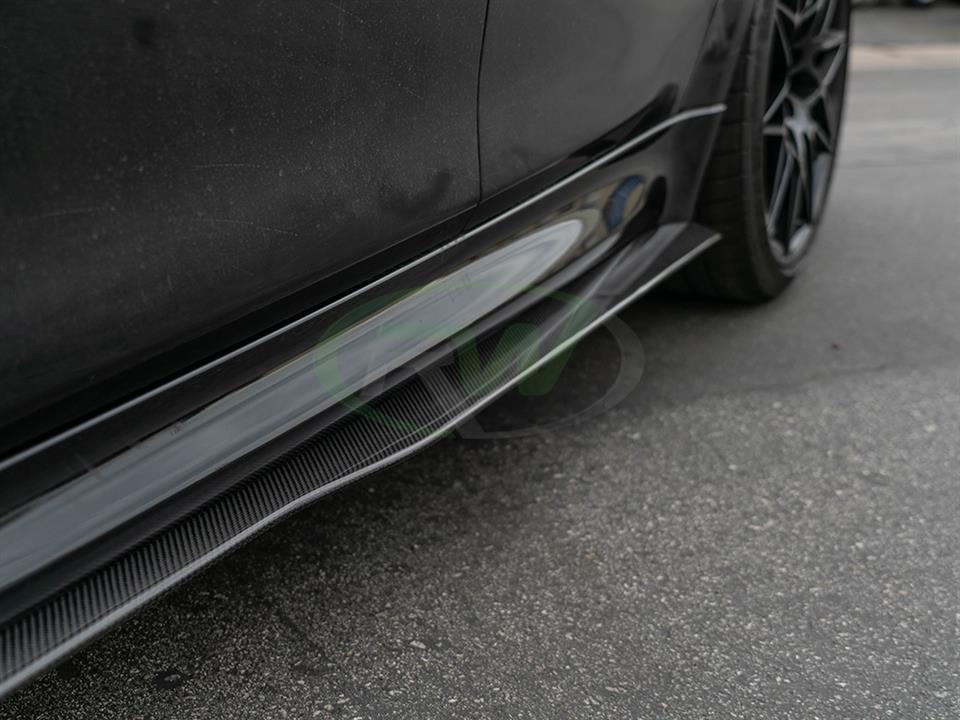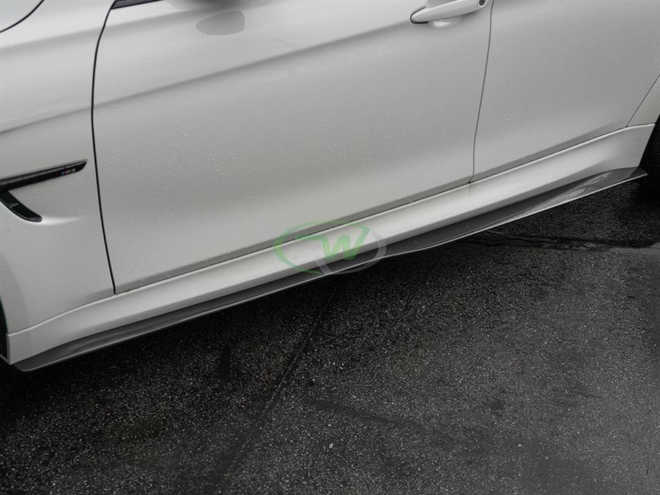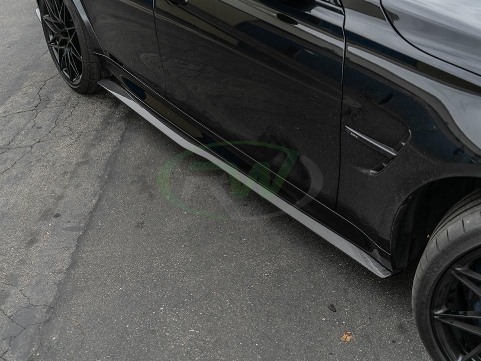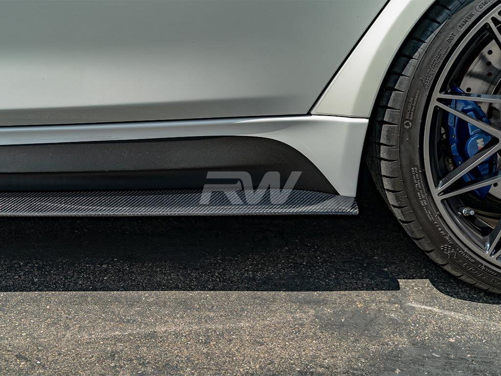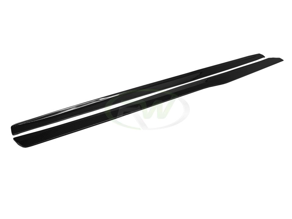 If you require a carbon fiber extension for your M3 that is more aggressive than a simple blade then our GTX side skirts are what you have been looking for. These F80 M3 carbon fiber side skirts contours the rocker panel and protrude about 2.5″ giving your car a lower appearance, even if you are still at stock height. We hand craft each set from genuine 2×2 carbon fiber that will nicely match any other RW Carbon parts you have on your car. To make them impervious to dirt and debris we finish each set with a UV resistant clearcoat which will ensures they stay looking great for years to come. Installation is completed with self tapping screws, which are included with each purchase.