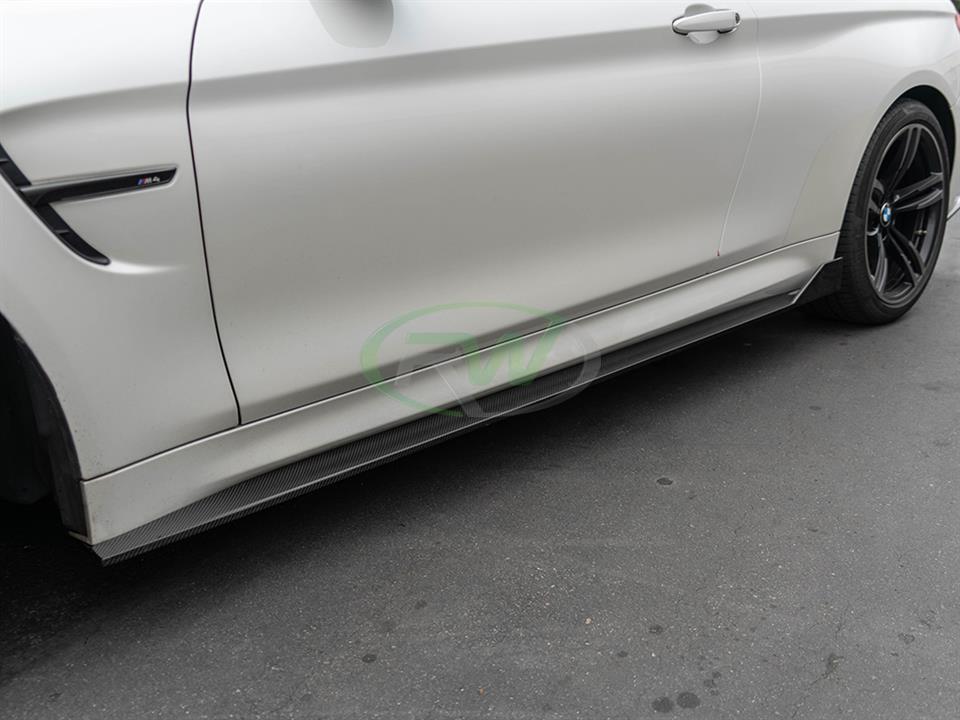 RW Carbon would like to present our in-house design for your F82 or F83 M4 side skirts extensions. RW Signatures M4 carbon fiber side skirt extensions were designed to bring an aggressive side profile to your vehicle and match perfectly with our RWS front lip, trunk spoiler and diffuser. We produce each set from 2×2 CF that is perfectly crafted to match OEM or other RW Carbon parts. Installation for the F82/F83 side skirts is simple – only using self tapping screws, which we include for you. Complete the carbon fiber theme on your M4 with a set of these RWS carbon fiber side skirt extensions. Please contact us if you have any questions regarding these M4 side skirt extensions.