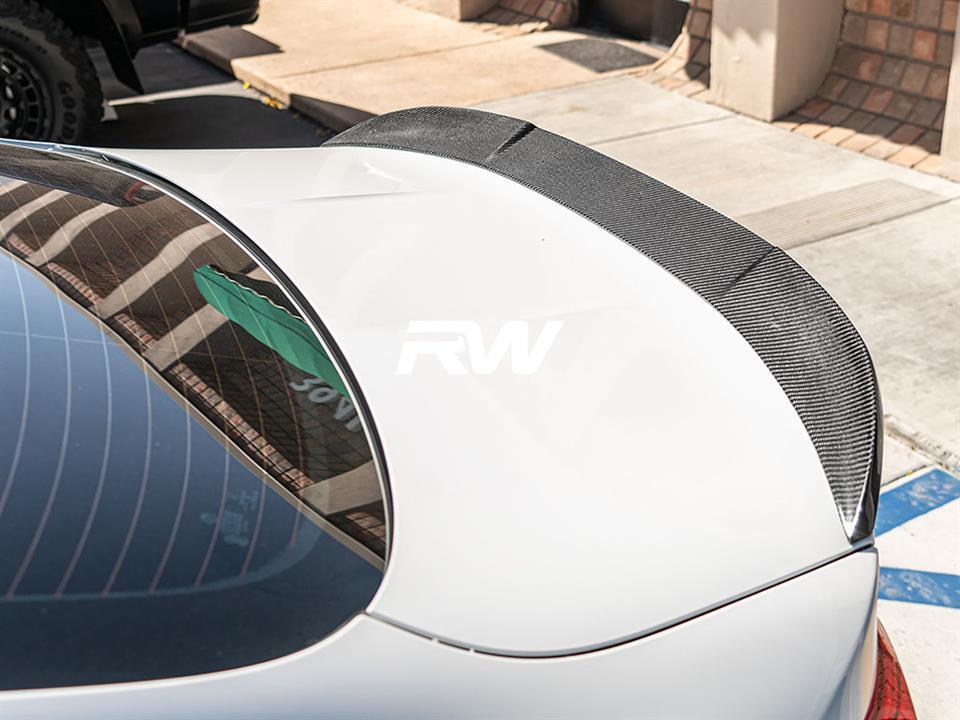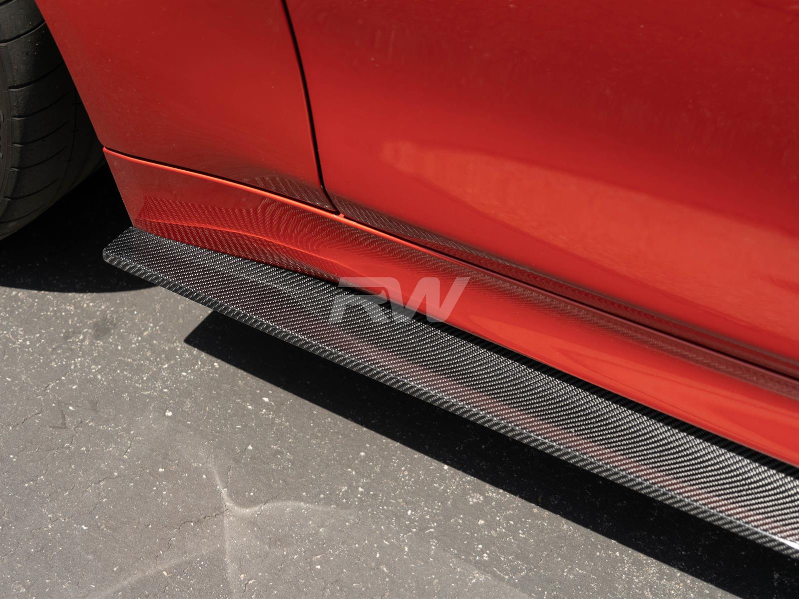 Looking to greatly enhance the appearance of your F82 M4 while still getting a great deal? Check out our RW Signatures’ carbon fiber aero package designed just for the BMW F82 M4! All parts in this bundle are designed in-house by RW Carbon, utilizing our high-quality 2×2 carbon fiber weave and finished with a clear coat to increase its durability. This RWS carbon fiber aero package comes with a front lip spoiler, a trunk spoiler, side skirt extensions, and a rear diffuser. Tailored with the daily driver in mind, these kits are designed to blend seamlessly with the F82 body while maintaining sufficient clearances to reduce the risk of damage to your new carbon fiber parts.