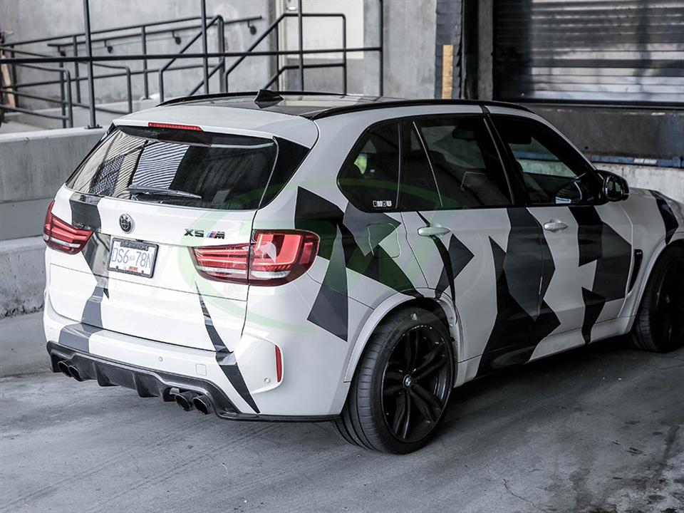 This 3D styled carbon fiber rear diffuser is our most aggressively styled diffuser for the F85 X5M. These will fit all 2015-2018 BMW F85 X5M and models. This diffuser will not only give the exhaust tip area a new aggressive look, but it will also follow the sides of the rear bumper to give you a lower and more race inspired feel. If you have a side of our side skirt extensions it will really complete the side profile appearance of your X5M. This diffuser is made using RW Carbon’s 2×2 weave carbon fiber fabric, so it will match other RW parts and accessories. Be one of the first in your town to rock this 3D style rear diffuser and pick up yours today. Each diffuser we sell is quality checked in house before we ship them across the globe.