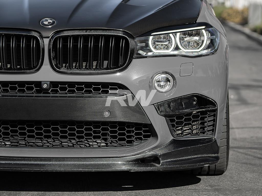 Enhance the front end of your F85 X5M or F86 X6M with this carbon fiber front bumper trim. This bumper trim is built using the same 2×2 carbon fiber that is either already installed on the car, or that came with the car. This piece brings together the aggressiveness of the front end giving your car a full carbon fiber look. As always all of our pieces are backed by a fitment and quality guarantee to ensure that you are getting a quality piece from RW.
