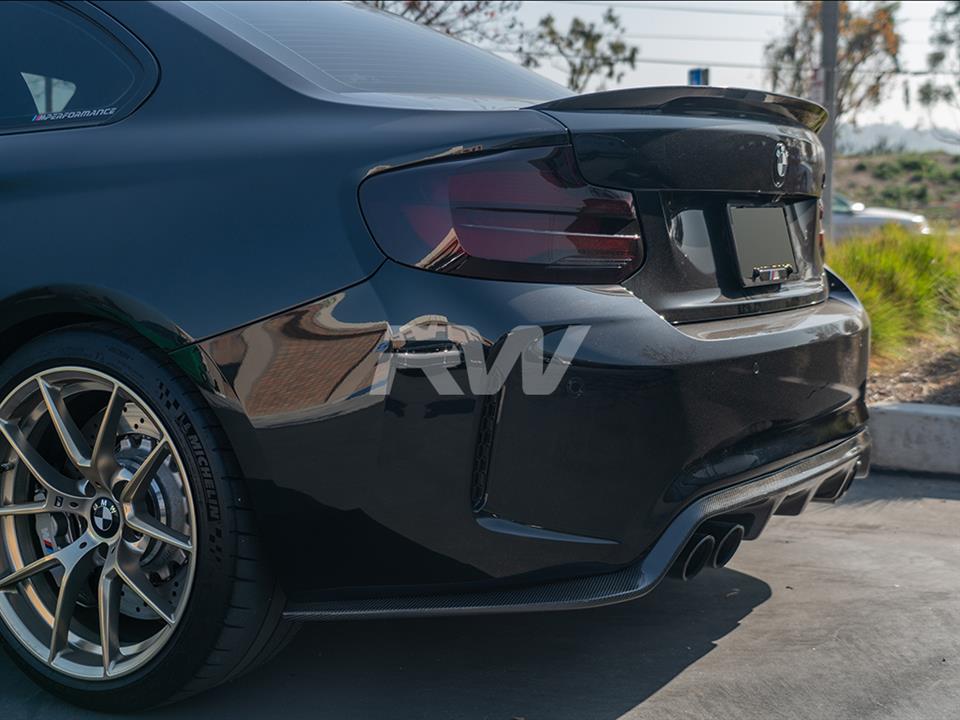 RW Carbon’s new M2 3D Style Diffuser is the perfect addition for your F87 M2. The 3D style diffusers are made using our same genuine 2×2 carbon fiber fabric as our other M2 parts. The 3D style carbon fiber diffuser directly replaces the OEM plastic diffuser providing a much cleaner and aggressive look. All of our pieces, as always, are coated with our high gloss clear coat to fight against fading or discoloring. For easy installation, we include all hardware required! Installation can be completed by the enthusiast in under 1 hour as the diffuser installs in the OEM mounting locations and requires no modifications. Each of these pieces are carefully inspected before leaving our Southern California warehouse to ensure that the product is in great condition when leaving.
