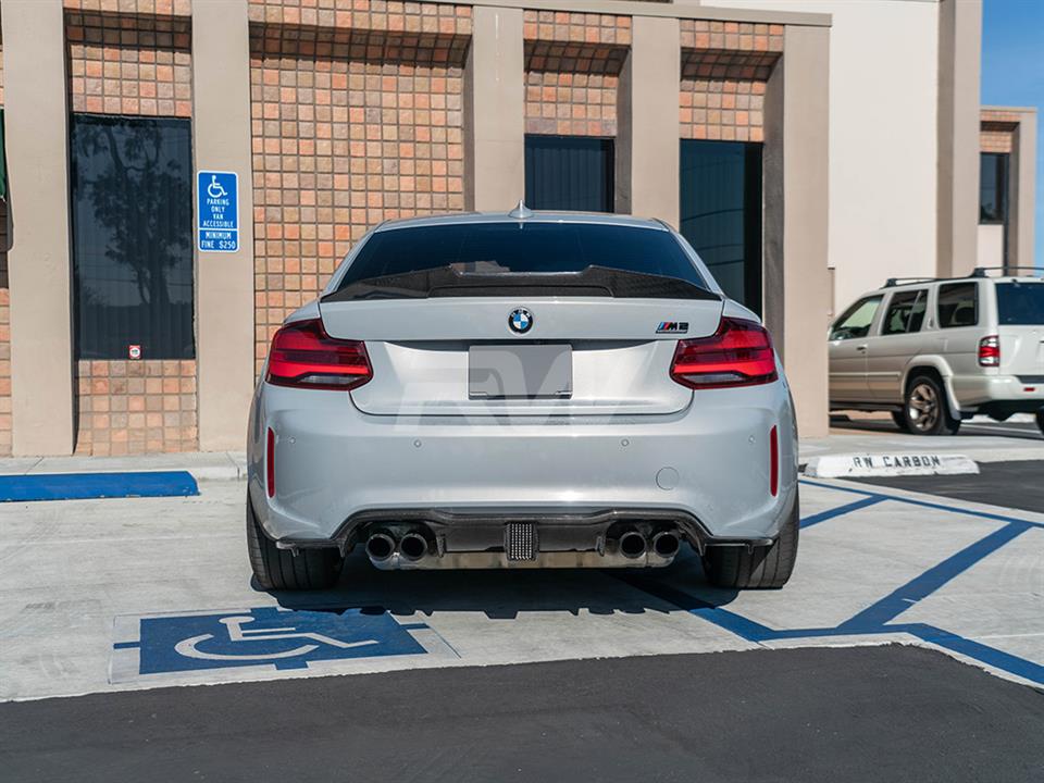 RW Carbon’s new Kholen Style CF Rear Diffuser is the perfect addition for your F87 M2 or M2 Competition. It incorporates a real LED that can be connected to your taillights for a F1 inspired touch. The Kholen style diffusers are made using the same genuine 2×2 carbon fiber fabric as our other M2 parts. The Kholen Style carbon fiber diffuser directly replaces the OEM plastic diffuser providing a much cleaner and aggressive look. All of our pieces, as always, are coated with our high gloss clear coat to fight against fading or discoloration. Each of these pieces is carefully inspected before leaving our Southern California warehouse to ensure that the product is in great condition when leaving.