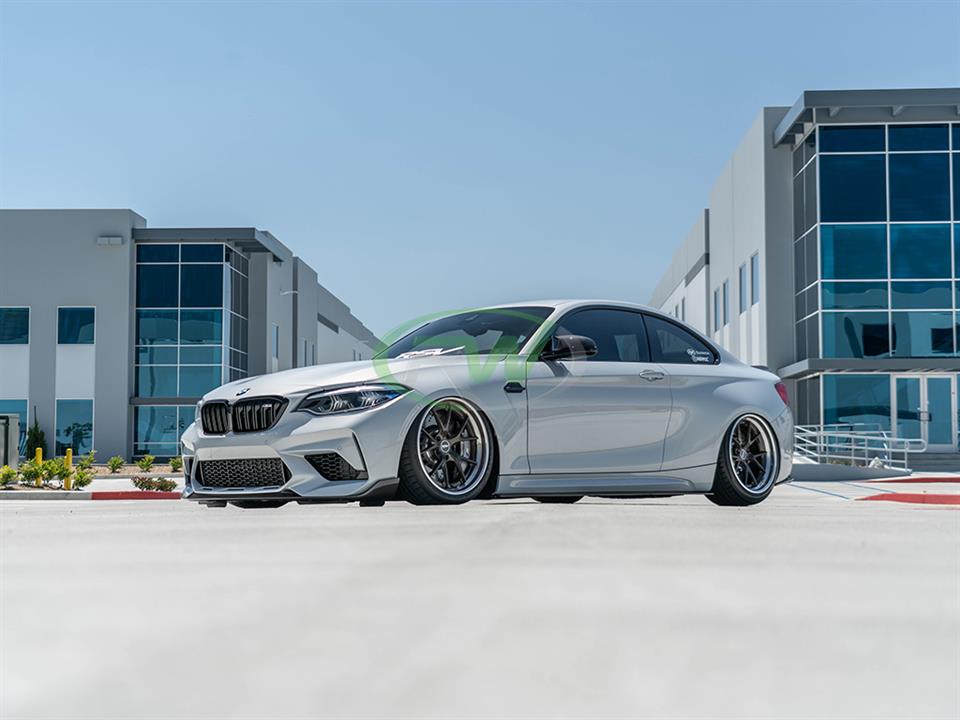 Designed to take your 2019-2021 F87 M2 Competition to the next level, this lip is the perfect addition to improve the front end of your M2. With aggressive styling and great fitment, this piece is a no brainer for people looking to add some carbon fiber to their M2 Competition. This piece uses the same 2×2 carbon fiber weave as our other products so every piece on your M2 will work together. This Carbon fiber front lip installs easily with just self tapping screws, which are included with your purchase. As always, this piece is backed by our fitment and quality guarantee and is protected by our UV resistant clear coat to ensure no fading or discoloration occurs.
