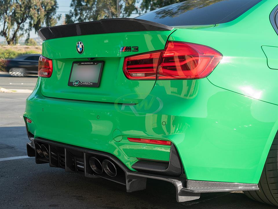 These carbon fiber rear bumper splitters are the perfect addition to any F80 M3 or F82/F83 M4. Installation is easy, only requiring 3M tape, and can be completed in under 30 minutes. Each set of F8X CF rear splitters features 100% carbon fiber craftsmanship and is finished with a UV resistant clearcoat. Whether your car is mainly stock or it already has other carbon fiber items installed – These M3 and M4 carbon fiber upper splitters are sure to give your car that personalized feel.