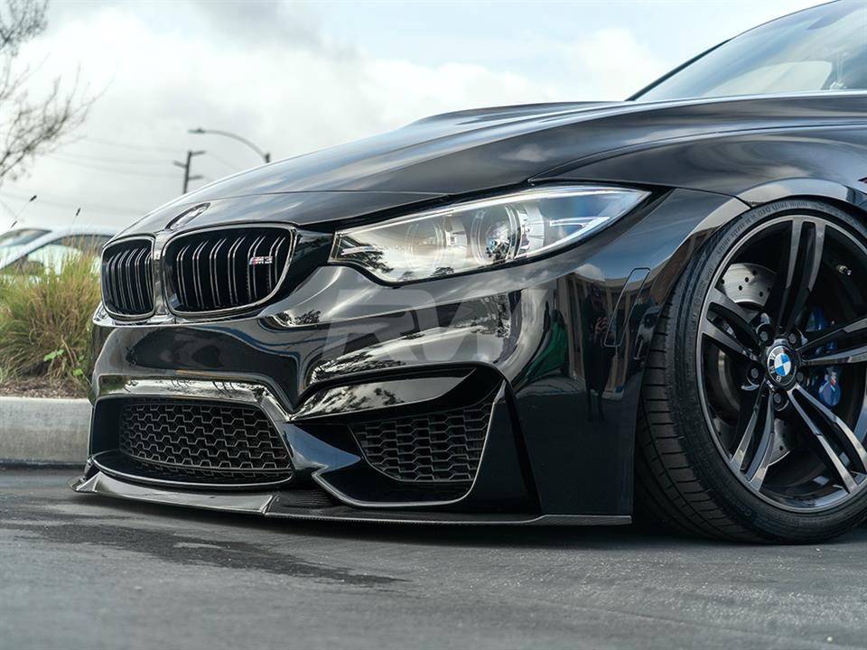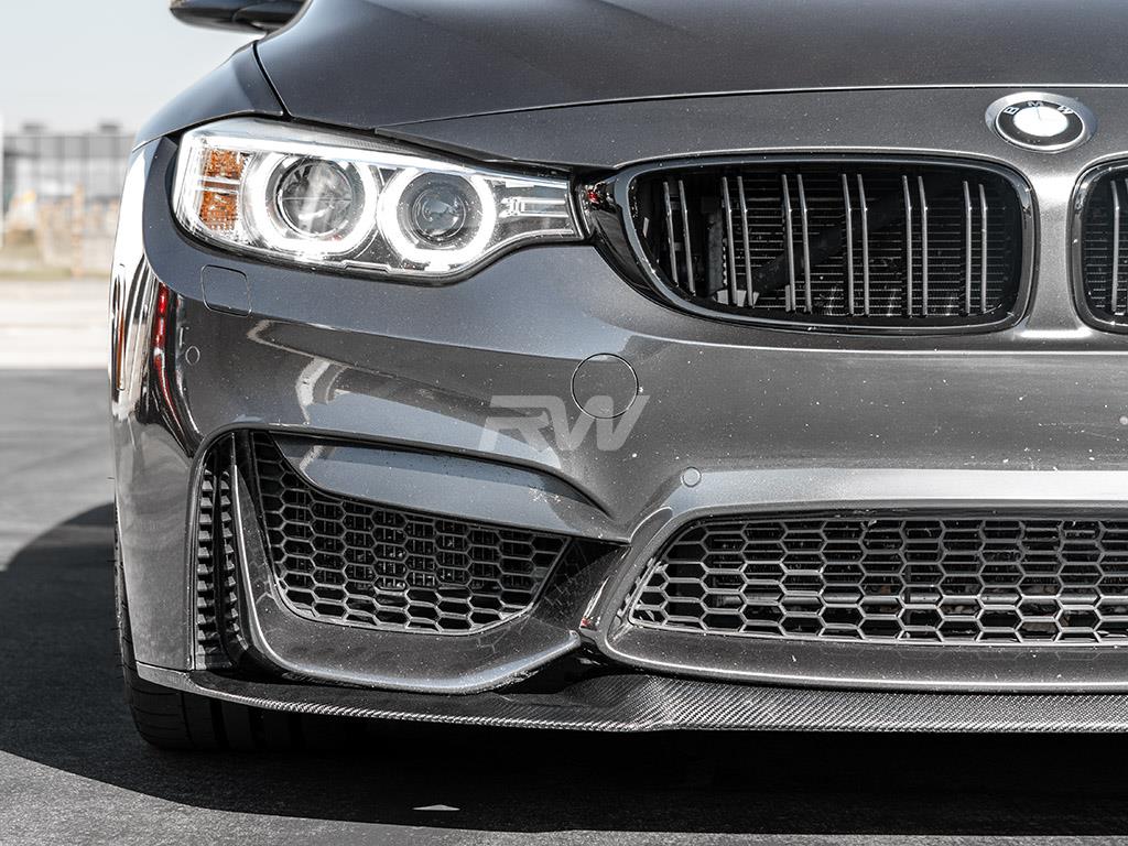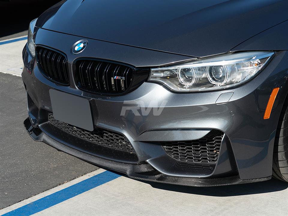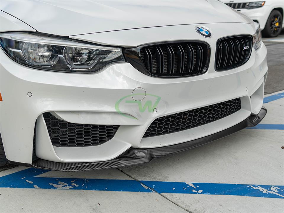 You guys asked, we answered! We are very proud to bring you our CS style front spoiler for your F8X. Ever since the M4 CS was released the F8X community has been lusting over the CS design lip, and now is your chance to get this desirable styling on your car. Many enthusiasts complained about the chassis mounts with the GTS lip, which required you to remove the front bumper to install. Going forward we took this into consideration and engineered a CS style lip that simply installs to your front bumper with screws and does not require removal of the front bumper, like the OEM counterpart. This front lip fits all 2015-2020 BMW F80 M3 and F82 F83 M4 models. Just like all of our M3 and M4 carbon fiber parts this CS style lip is hand-crafted from genuine 2×2 carbon fiber and then completed with a UV-resistant clearcoat which prevents discoloration and helps maintain a nice lustrous shine. All F8X CS style carbon fiber front lips come backed by RW’s fitment and quality guarantee – So purchase your carbon fiber lip with confidence.