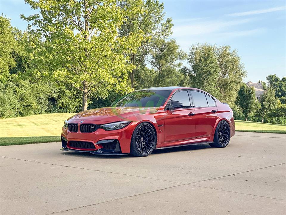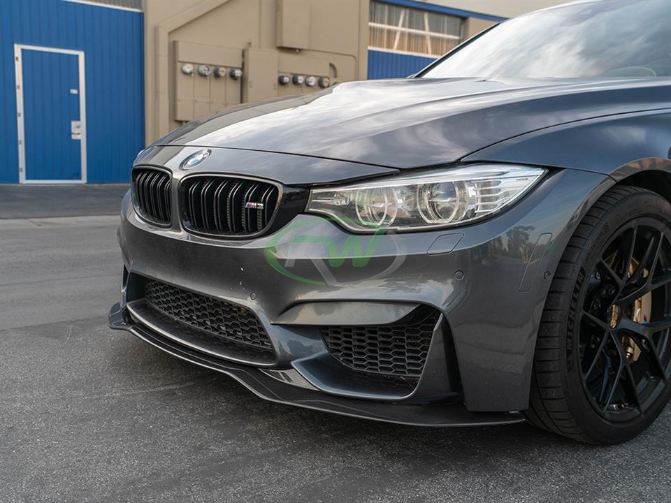 Another great carbon fiber front lip option for your F80 M3 or F82/F83 M4 is this GTX CF front lip. Like our other offerings this lip is hand crafted using using a thin fiberglass core and fully covered in genuine 2×2 carbon fiber, which will match your other RW or OEM carbon fiber parts. Unlike many other lips on the market the GTX front lip can be used with carbon fiber performance style or OEM splitters. Installation is quite easy and just requires self tapping screws, which we include for you. We finish the item with a UV resistant clearcoat which helps maintain a nice lustrous finish for years to come. Upgrade the front-end look of your F80 M3 or F82/F83 M4 with a new GTX carbon fiber front lip. Like all RW items this CF lip comes backed by our fitment and quality guarantee! Please reach out if you have any questions.