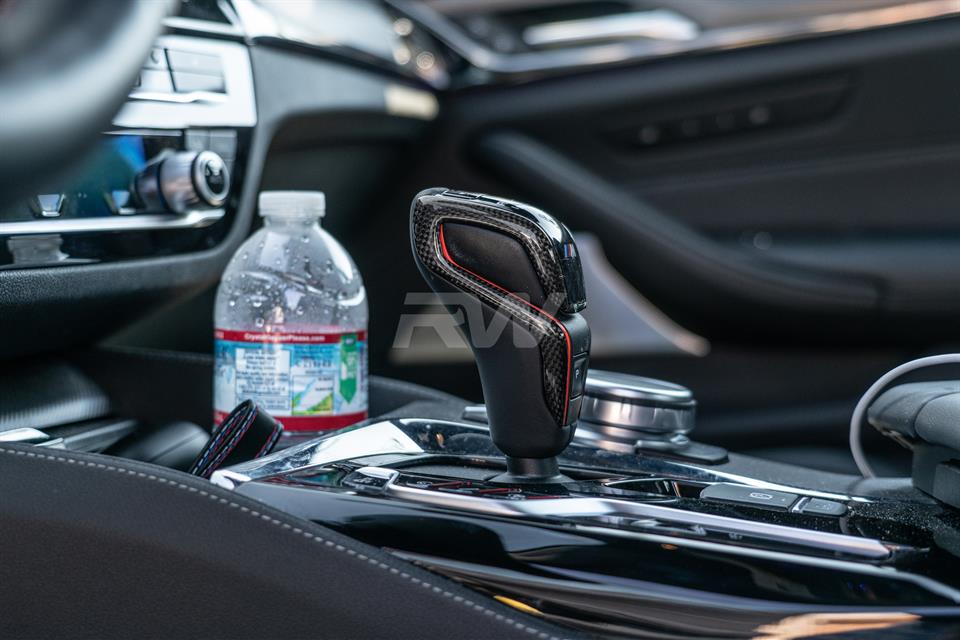 Professional installation is always recommended for RW Carbon’s products including this BMW M carbon fiber gear selector trim. These trim pieces replaces your existing one and clips into place using the same mounting locations.