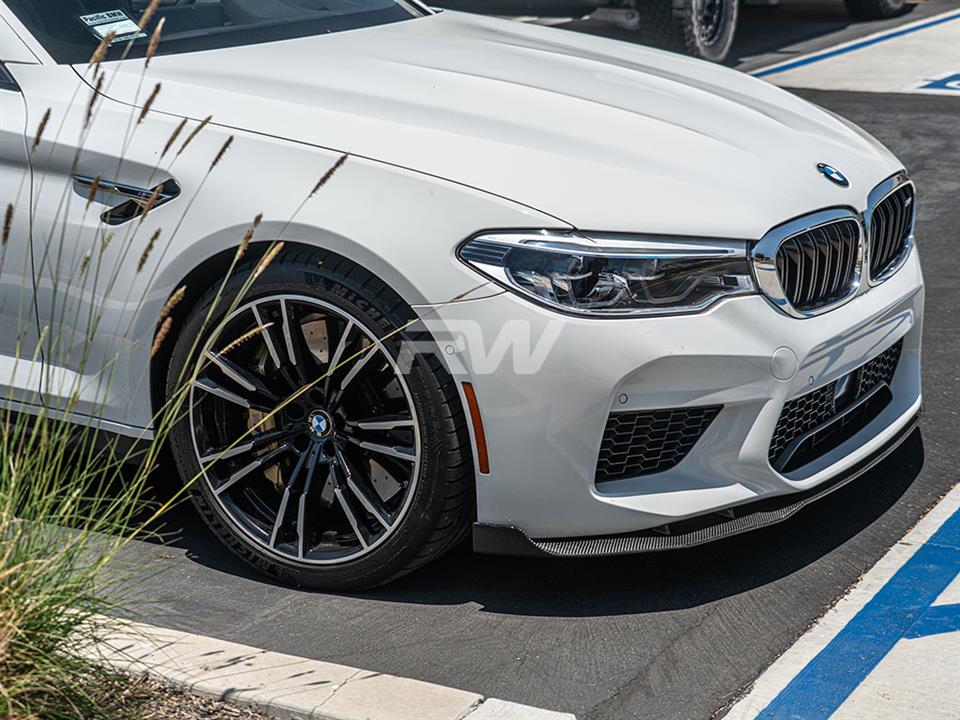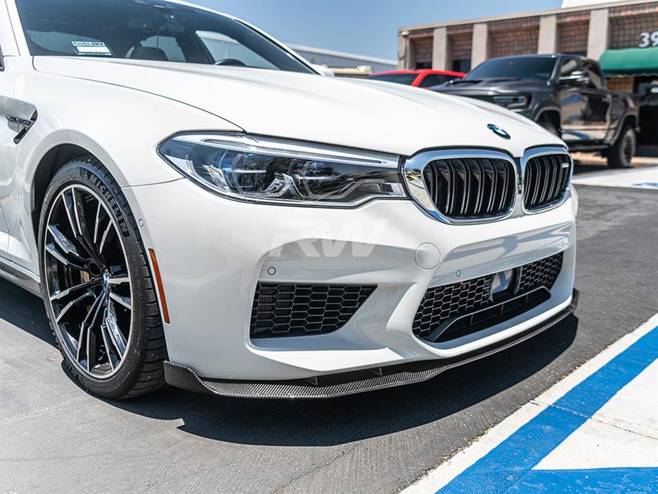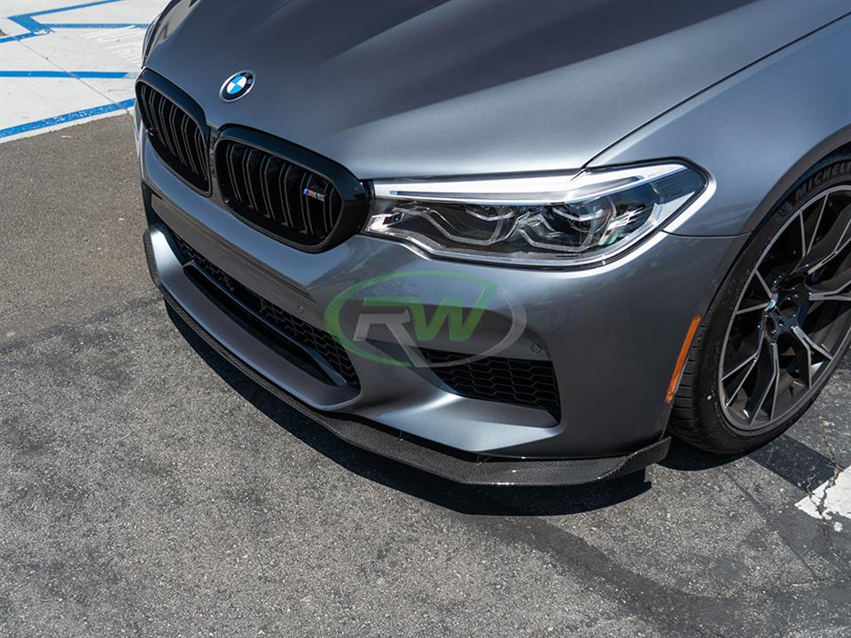 This man style carbon fiber front lip is RW Carbon’s first offering for F90 front lips. It gives your 2018-2020 BMW F90 M5 a great combination of sporty styling while not being too over the top. This F90 M5 carbon fiber lip will come as a one piece kit crafted from genuine 2×2 carbon fiber that will nicely match any OEM or RW parts you have installed on the vehicle. Installation is completed via a combination of OEM hardware and self tapping screws, which are included with purchase. To ensure the front lip maintains high luster we complete each with a high gloss UV resistant clearcoat, that will reduce the chances of fading. Each Man style F90 M5 lip comes backed by the RW fitment and quality guarantee – You’ll not be disappointed! Please contact an RW Carbon Fiber Expert if you have any questions.
