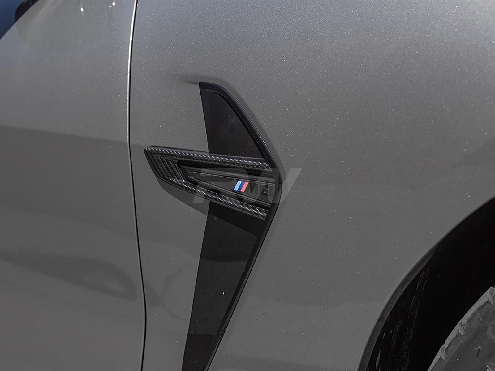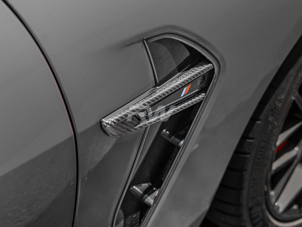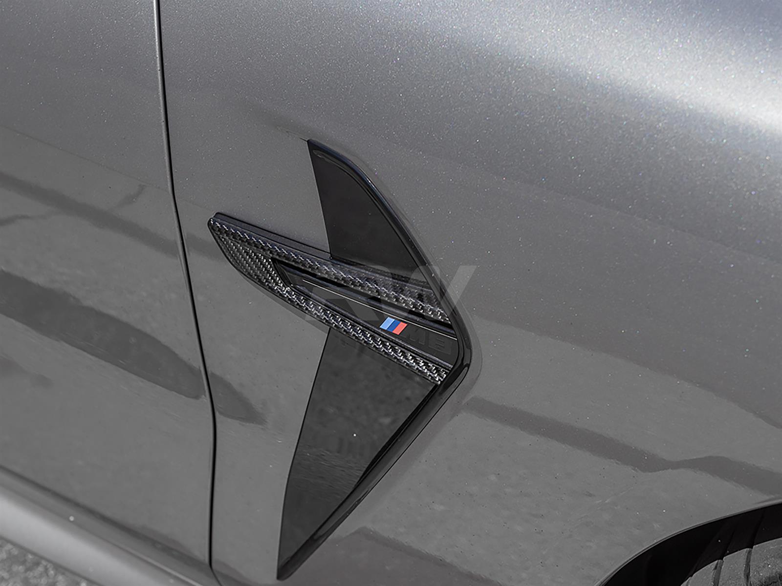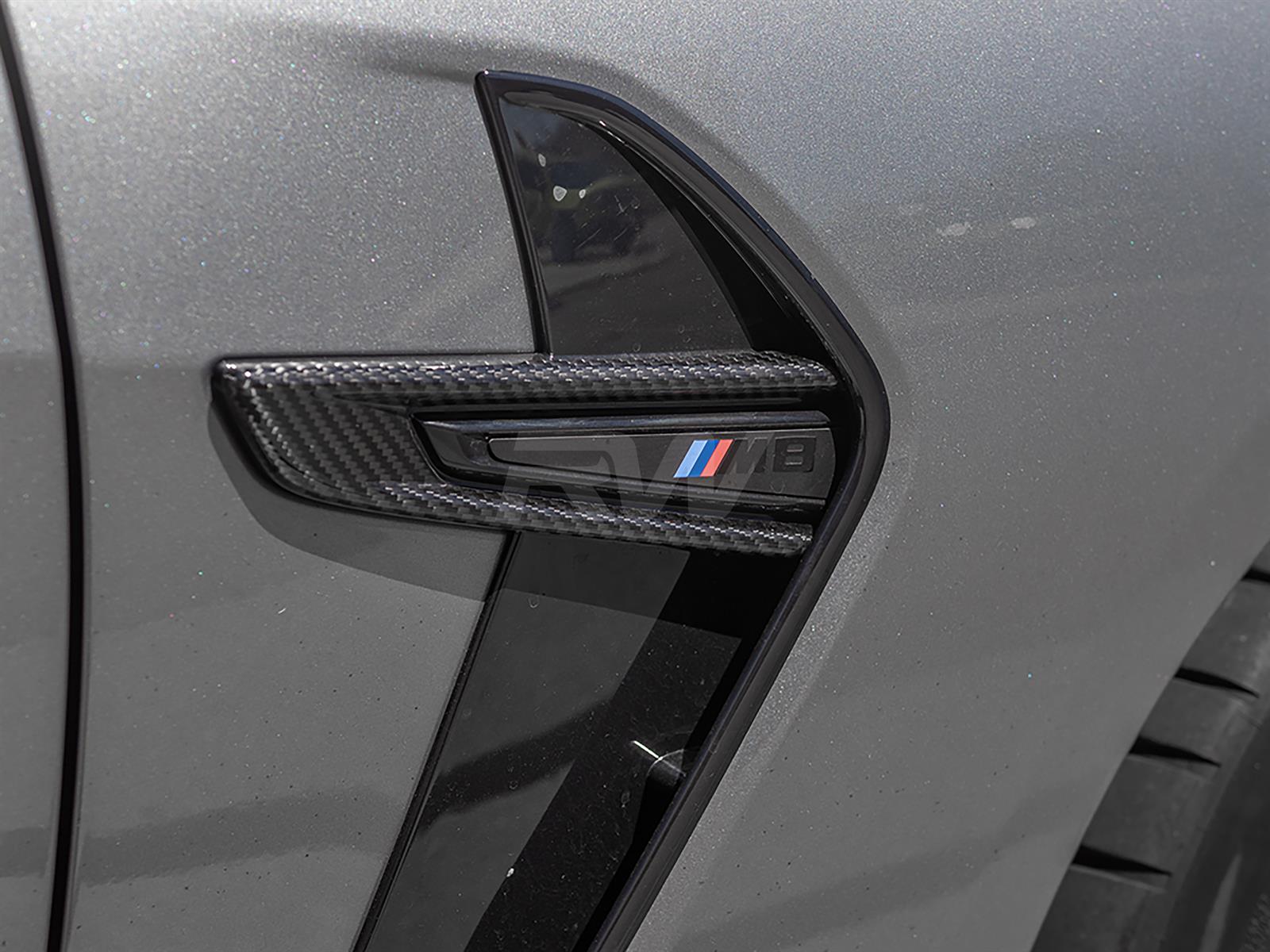 These BMW F91/F92/F93 M8 Carbon Fiber Fender Trims cover your OEM fender trims using 3M tape and can be completed in about 20 minutes.