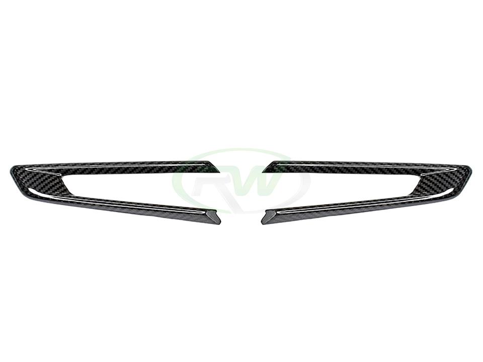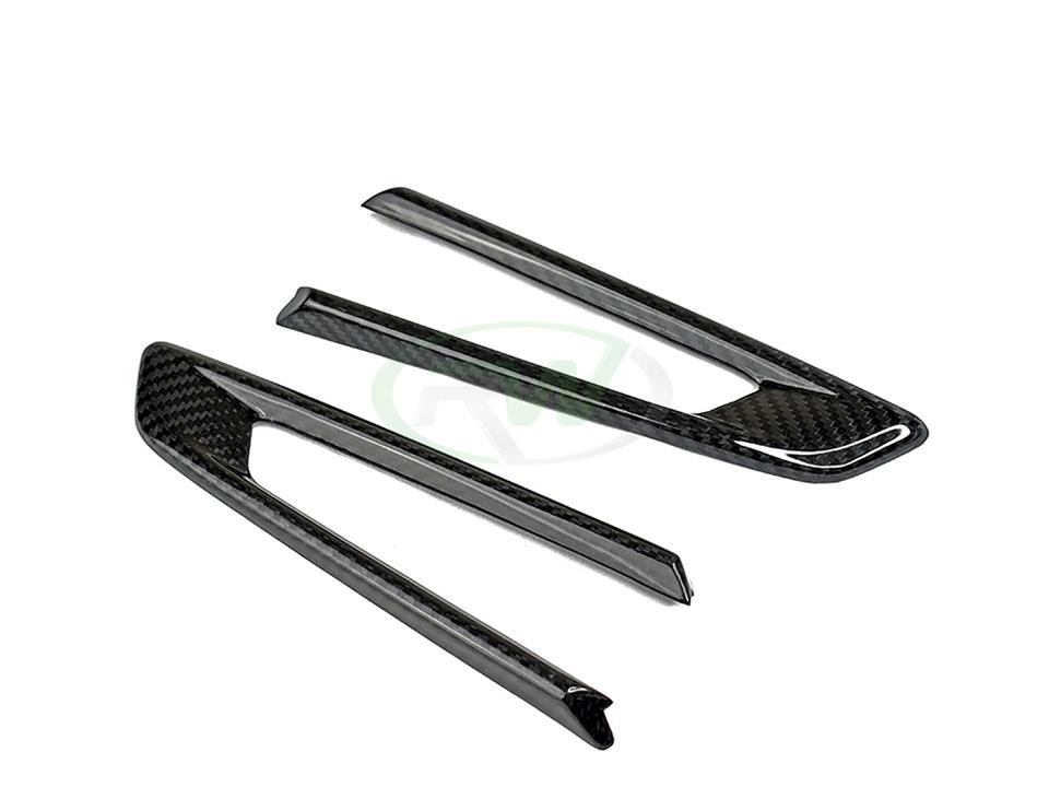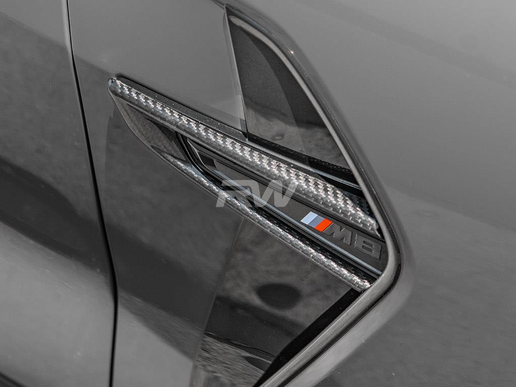 Add to your carbon fiber build with these BMW F91 F92 and F93 M8 Carbon Fiber Fender Trims. These mount simple with 3M tape and mount over your factory trims for a easy and pain free install. These fender trims are built with 100% carbon fiber making them very lightweight and durable. Our fender trims are made to match any other RW carbon fiber pieces that are already on your BMW. These fender trims are coated in a UV resistant clear coat to promote a lustrous shine, and come with a fitment and quality guarantee.