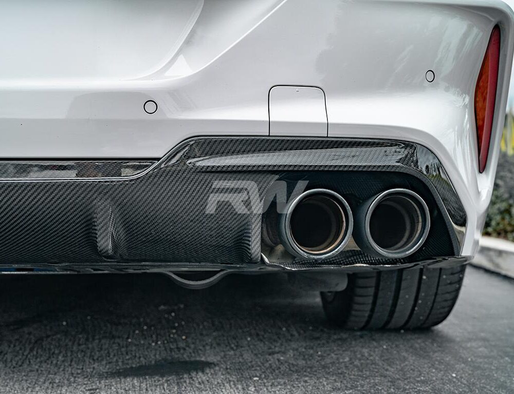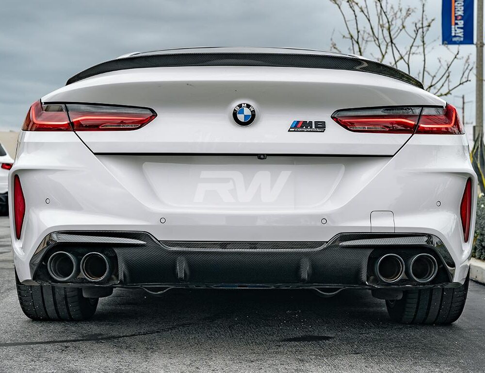 Professional installation is always recommended for RW Carbon’s products including this BMW F91/F92/F93 M8 carbon fiber OE Style rear diffuser. This rear diffuser takes the place of your existing M8 diffuser and uses the same mounting locations. The rear bumper must be removed for installation and a screw installed in a few tabs. Please contact us if you have any questions.