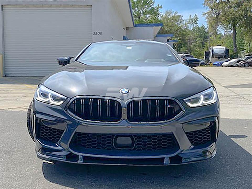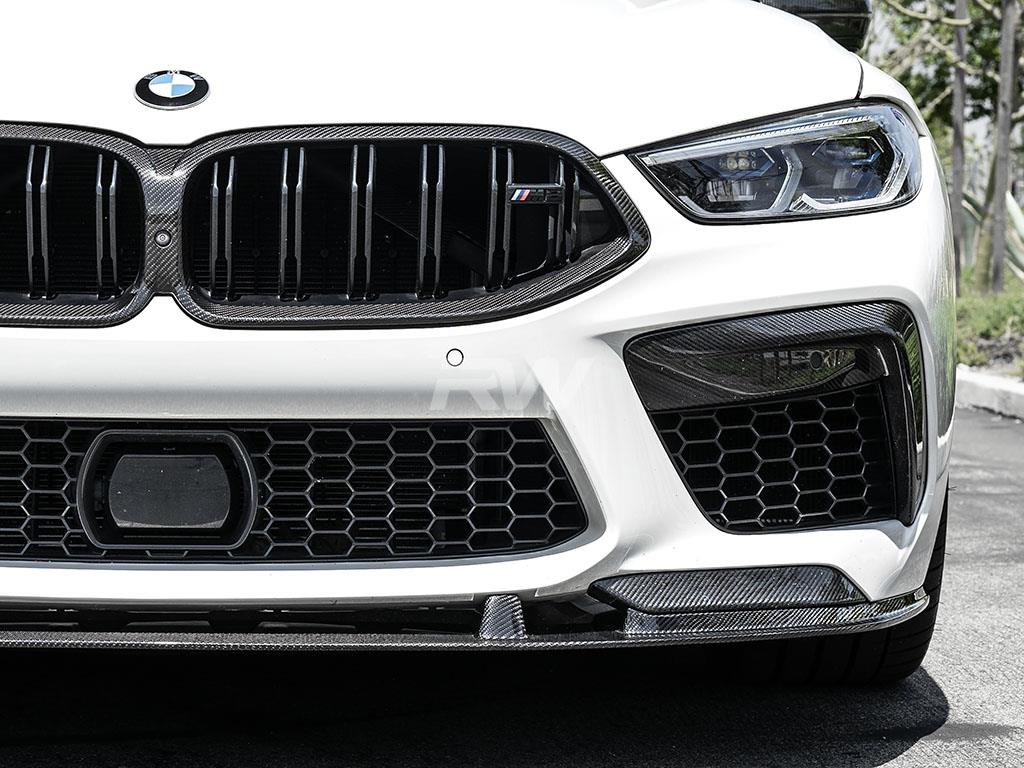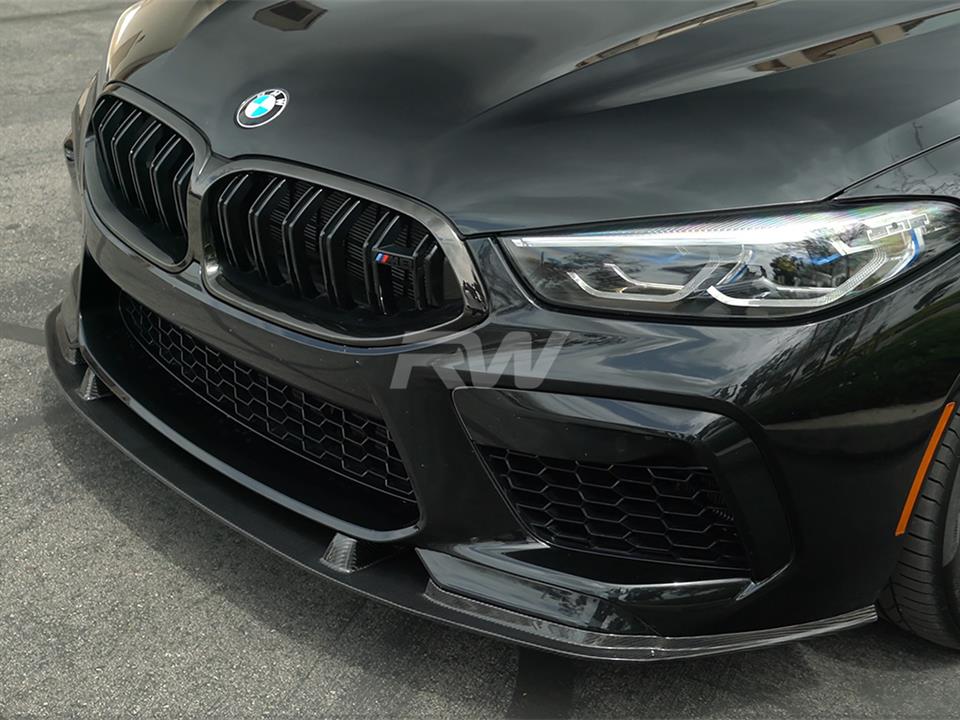Upgrade the exterior aero of your 2019+ BMW F91 F92 or F93 M8 with our RW Signatures carbon fiber front lip spoiler. This front lip is made for enthusiasts, by enthusiasts, and was designed in-house at RW Carbon. This RWS front lip features 2×2 weave full carbon fiber construction that is then clear coated for a lasting high gloss shine and UV protection. As with all RW Carbon products, you can expect bolt-on installation that requires no special modifications to your vehicle. It will require the use of self-tapping screws, which will be included with every order. In order to ensure the highest quality carbon fiber on the market, we quality check every single one of our carbon fiber pieces that are shipped out to ensure there is no damage. If you have any questions please do not hesitate to contact one of our carbon fiber specialists.