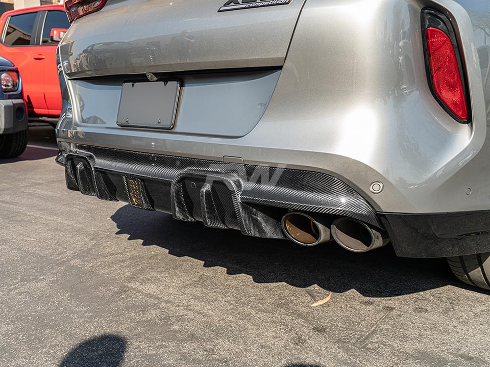 RW Carbon highly recommends that all of our parts be installed by a professional. The rear bumper must be removed for installation. Once the rear bumper is removed you can install the new CF diffuser using the OEM bumper slots. For more details please contact us prior to starting the installation.