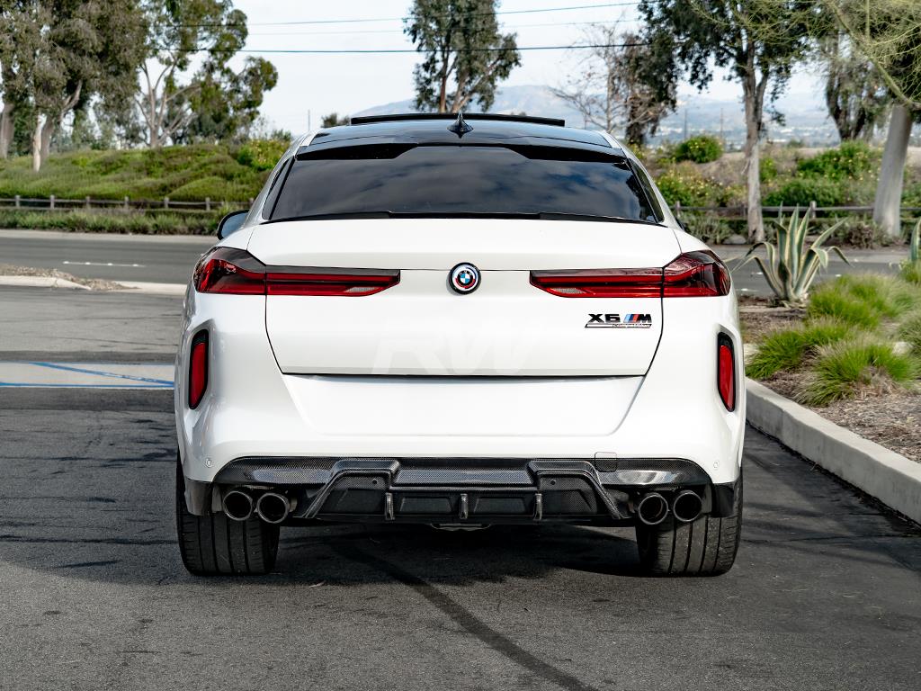 RW Carbon is proud to present the all-new RWS or RW Signatures carbon fiber rear diffuser for the 2020+ BMW F95 X5M and F96 X6M. All RWS parts are designed in-house at RW Carbon’s Southern California facility. It is made with 2×2 carbon fiber weave and finished with a clear coat to increase durability, making it last longer throughout the years. This diffuser is very unique and currently stands as one of the more aggressive diffuser option on the market. Each diffuser undergoes multiple quality checks before shipping worldwide to make sure you are getting the best from RW. Please reach out to one of our carbon fiber specialists if you have any questions about this RWS CF diffuser for the X5M and X6M.