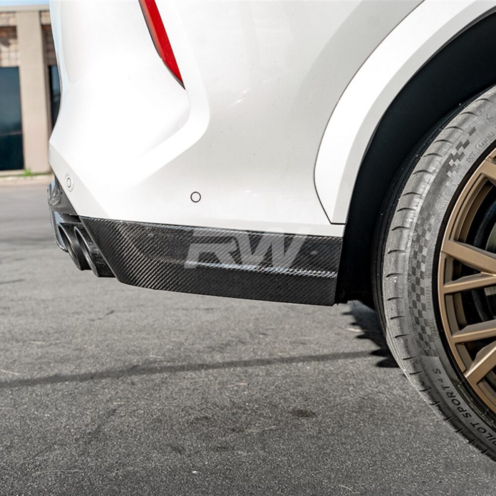 Now introducing the BMW F96 X6M Carbon Fiber Rear Bumper Trim, crafted from premium dry carbon fiber. Designed to fit the F96 X6M and X6M LCI, this trim enhances your rear bumper with sleek, luxurious styling. Each piece is clear-coated to prevent damage and discoloration over time. Installation is straightforward, replacing the OEM versions and reusing the same mounting locations for a perfect fit and seamless integration. Upgrade your BMW X6M’s look with this stylish and sporty accessory!
