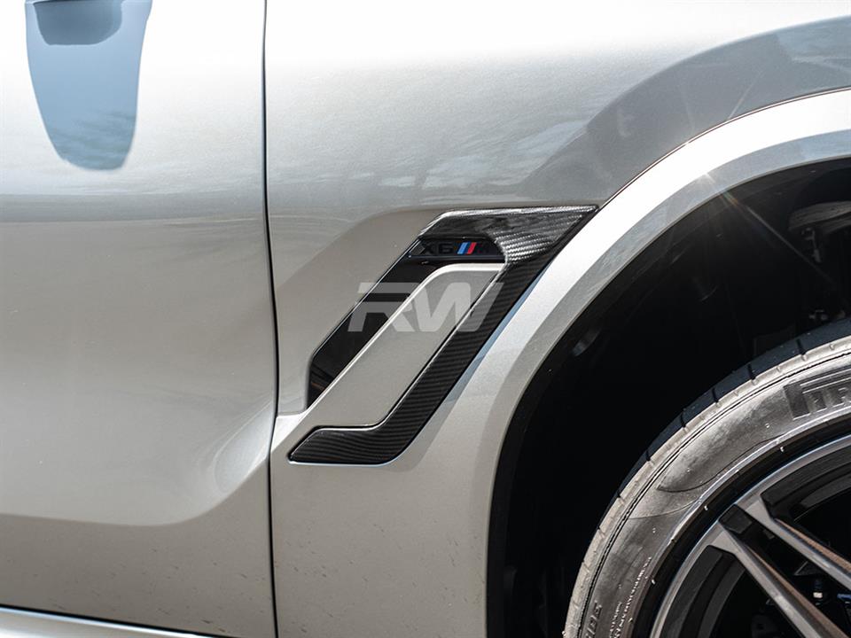 These carbon fiber side vent covers for the F96 X6M will attach using 3M brand double sided tape.