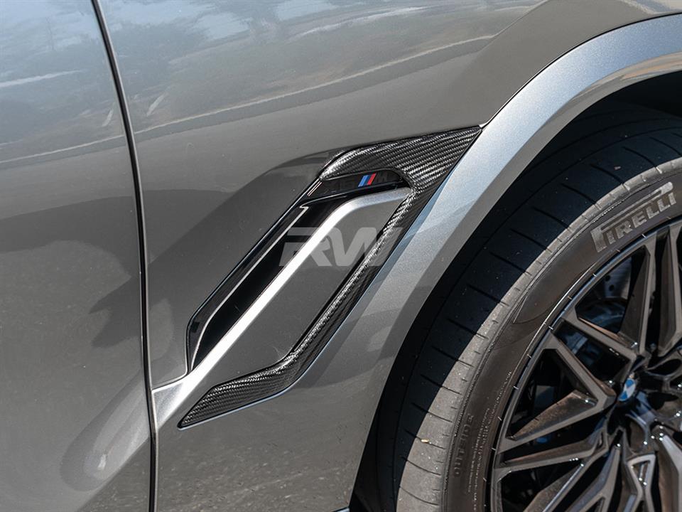 If you’re a fan of the carbon fiber look and are searching to upgrade your car’s aesthetic then these BMW F96 X6M side vent carbon fiber covers are the pieces you need to start or complete your carbon fiber build. Our carbon fiber side vent covers are sold per pair and simply installed over your existing chrome or black side vent trim piece via 3M tape. Each set is crafted from genuine 2×2 carbon fiber and completed with a UV resistant clearcoat which ensures they remain vibrant for years to come. These pieces as well as the rest of our parts come with a quality and fitment guarantee so you can be assured you’re getting a quality part every time. Fits BMW F96 X6M 2020+ models.