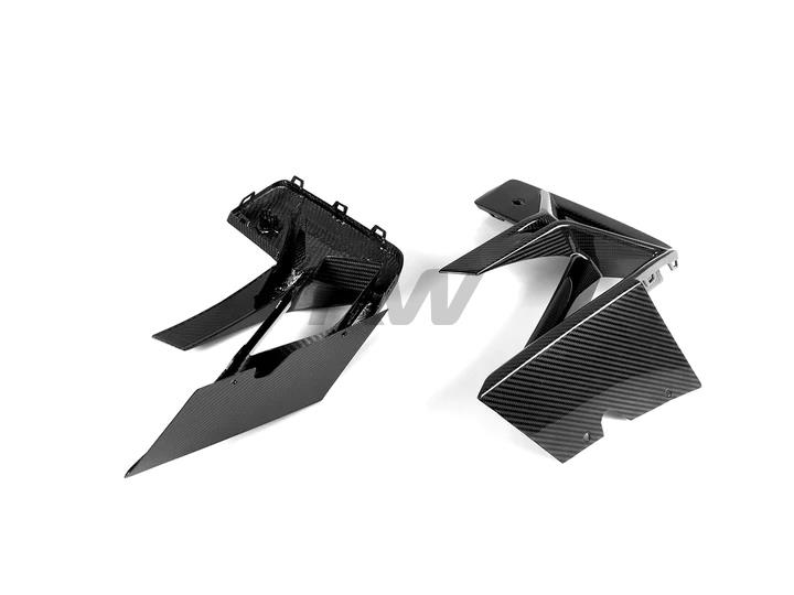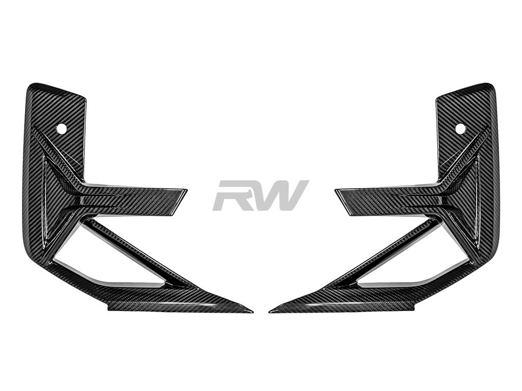 Revamp your F97 X3M LCI or F98 X4M LCI with the inclusion of RW Carbon’s Dry Carbon Fiber Front Bumper Trims. Say goodbye to the conventional gloss black trim and embrace a sophisticated upgrade seamlessly blending into your existing RW Carbon or OEM components. These trims, crafted with precision from real 2×2 weave dry carbon fiber, effortlessly fit into the OEM slot. The construction using carbon fiber ensures not just a reduction in weight but also an exceptionally sturdy addition to your X3M LCI or X4M LCI. Infuse a touch of race-inspired allure into your front bumper, introducing a distinctive and captivating element to your vehicle. The installation process is simple, requiring no special modifications. Tailored explicitly for BMW X3M LCI and X4M LCI models, these bumper trims play a huge role in achieving a polished and cohesive aesthetic for your ride. Unleash the complete potential of your X3M LCI or X4M LCI with RW Carbon’s premium front bumper trims.