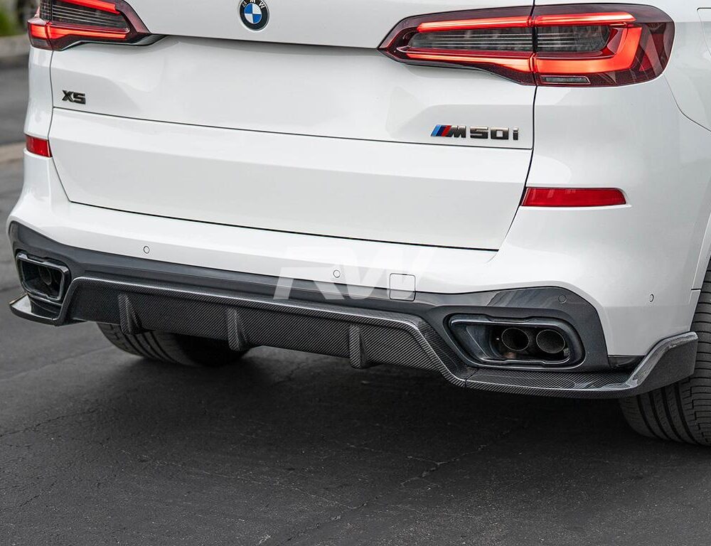 Enhance the rear appearance of your 2019+ BMW G05 X5 M Sport and make it stand out from the crowd with this Carbon Fiber DTM Rear Diffuser. Designed with a 100% bolt-on installation, this diffuser can be seamlessly installed without the need for any special modifications to your vehicle. We meticulously craft these diffusers using genuine carbon fiber and finish them off with a stunning clearcoat, ensuring a sleek and high gloss look. We understand that your BMW G05 is a high-quality vehicle deserving of a matching diffuser, which is why our diffuser boasts exceptional construction and craftsmanship. By adding carbon fiber to your car, you can achieve a captivating, aggressive finish that complements its overall aesthetic.