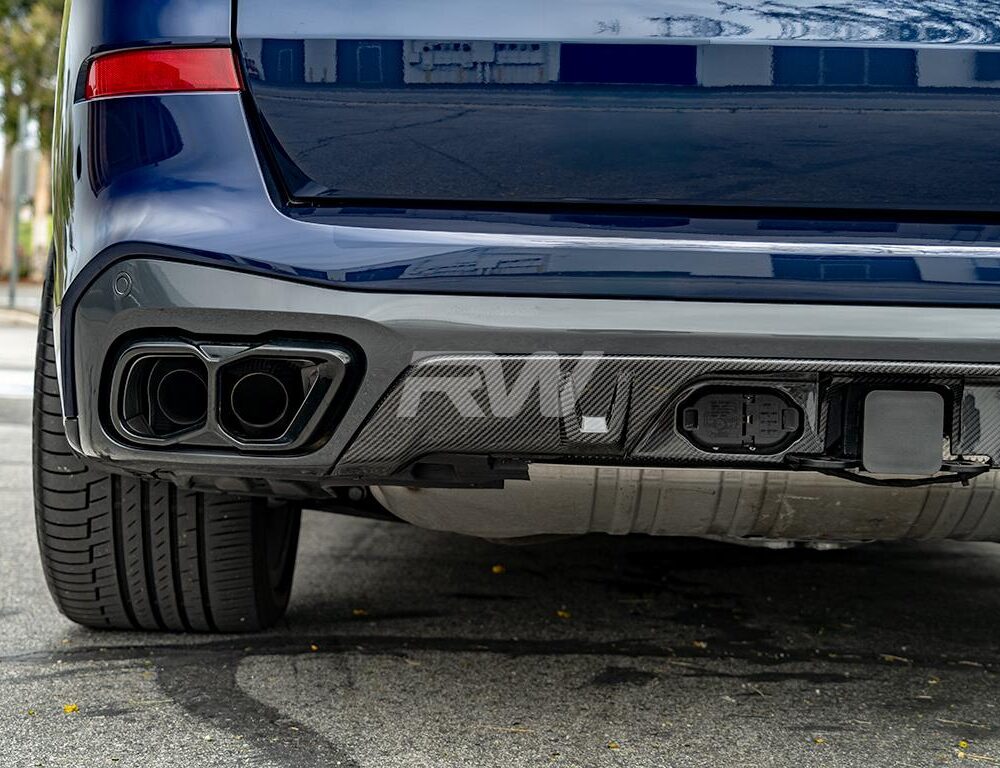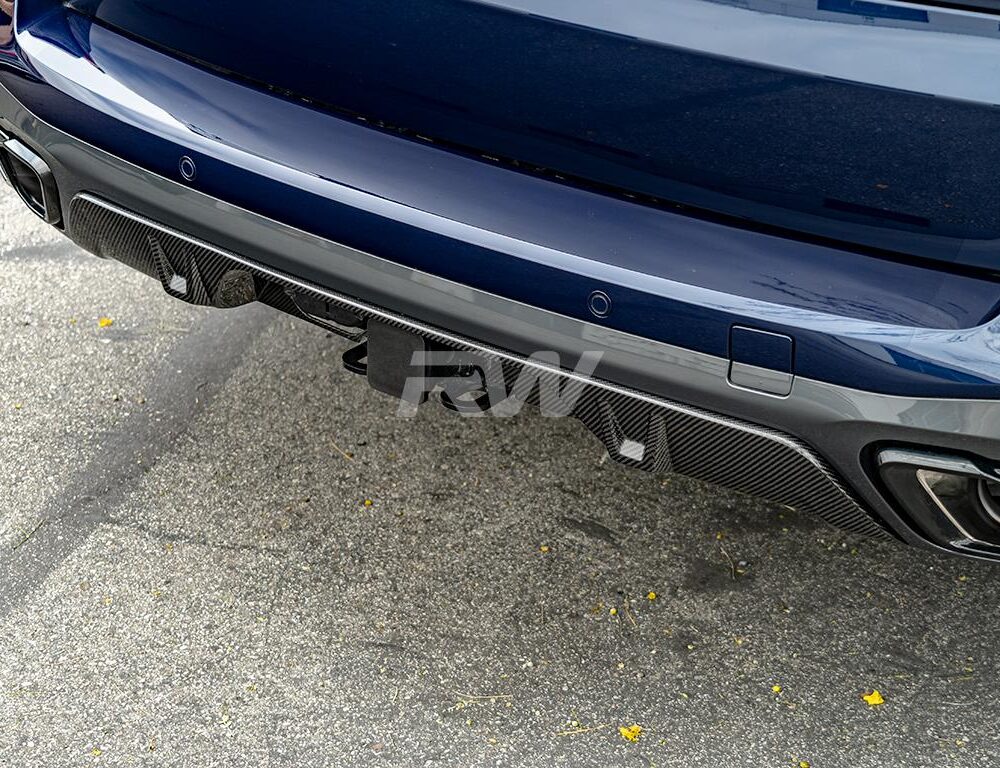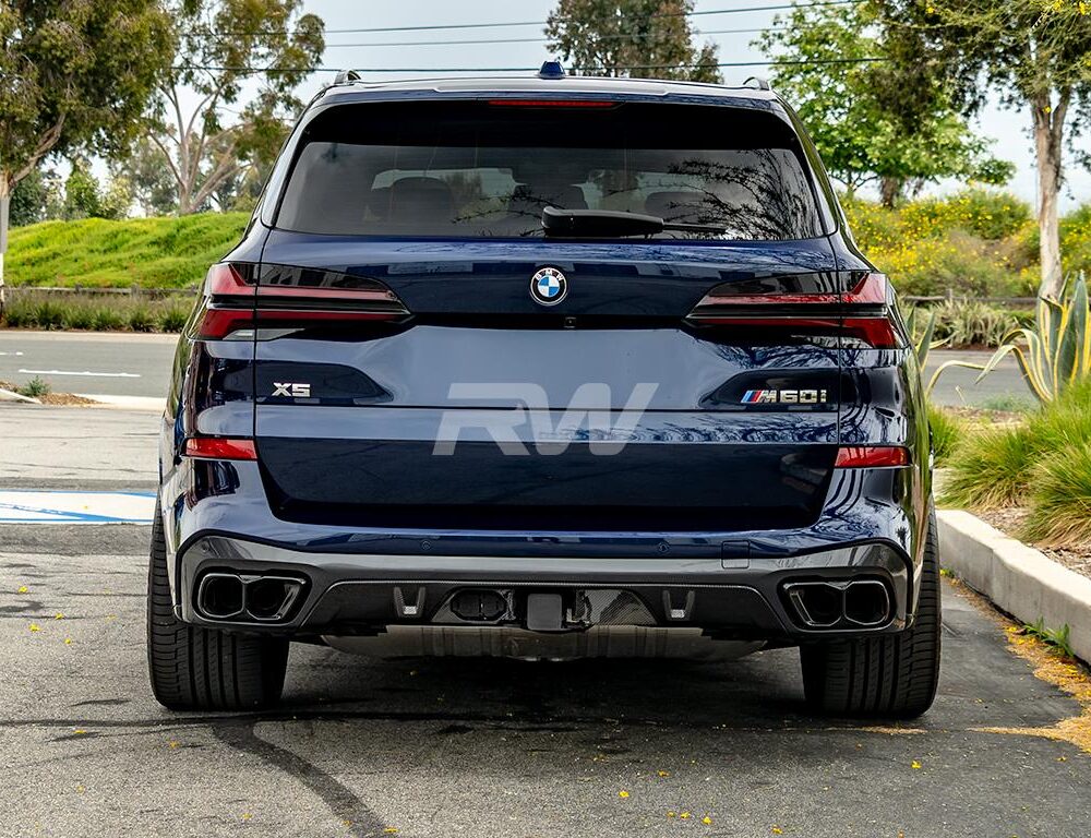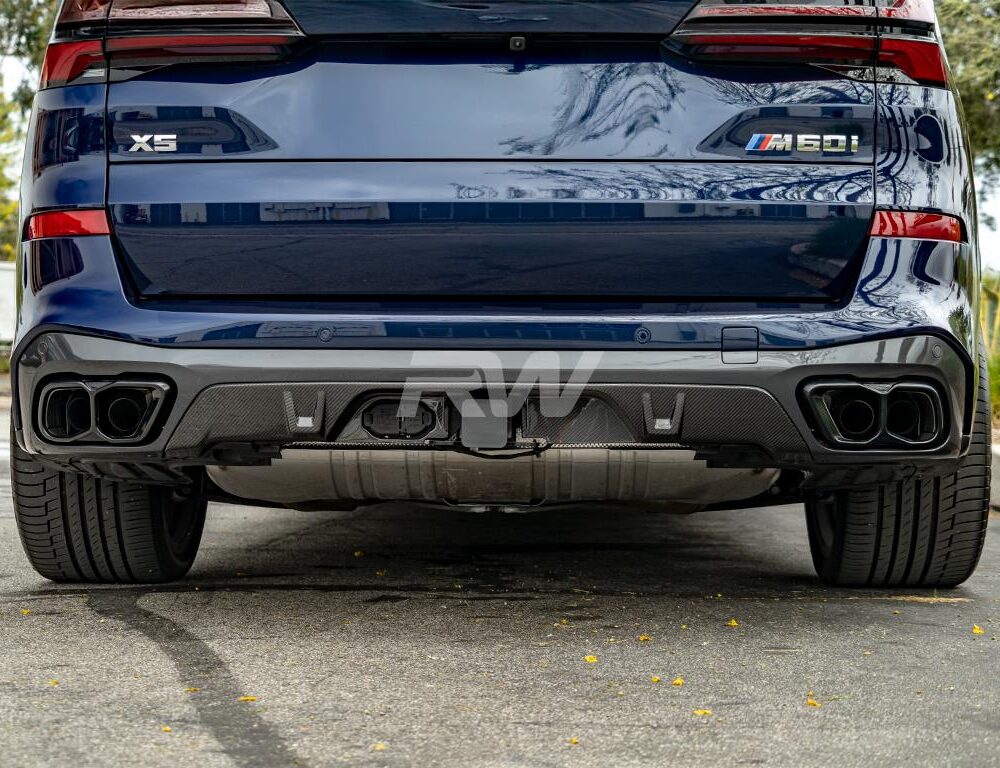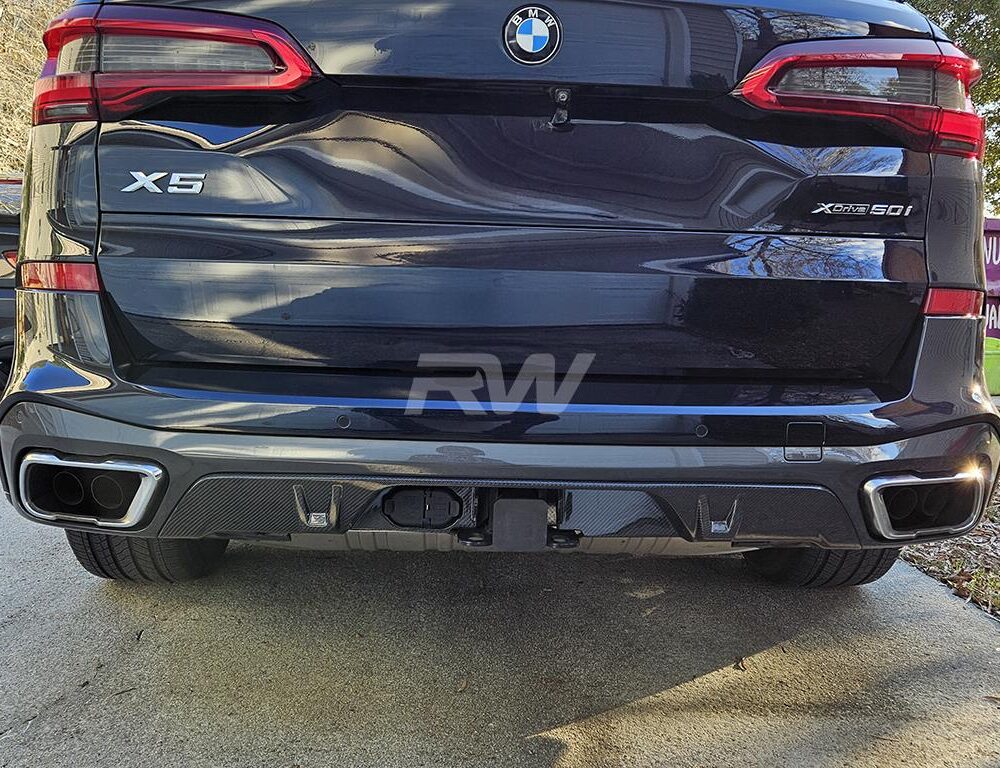 Transform the rear of your 2019+ BMW G05 X5 with the Carbon Fiber Rear Diffuser, specifically designed for X5 models equipped with the Tow Hook Package. Crafted from genuine 2×2 carbon fiber, this diffuser offers exceptional durability and a high-gloss finish that enhances the sporty look of your vehicle. It easily installs using the factory mounting points, replacing the factory diffuser with a sleek, high-performance carbon fiber upgrade. For more information about this diffuser, feel free to reach out to us!