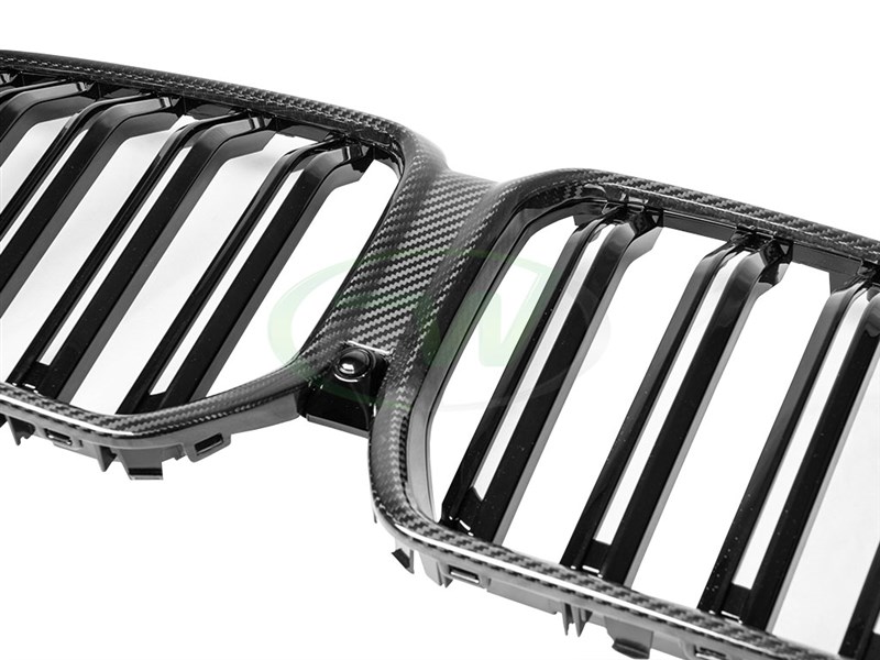 Start off your BMW G06 X6 or F96 X6M build by replacing those black or chrome factory grilles. These carbon fiber double slat grilles are a great item to start since they are simple to install, affordable and cover a large area on the front of your G06 or F96. These are direct replacements to your factory grilles and re-use your existing mounting locations. These are constructed out of 100% dry carbon fiber for a durable and long lasting product. Each set of clear coated and quality checked to ensure you receive a show quality piece.