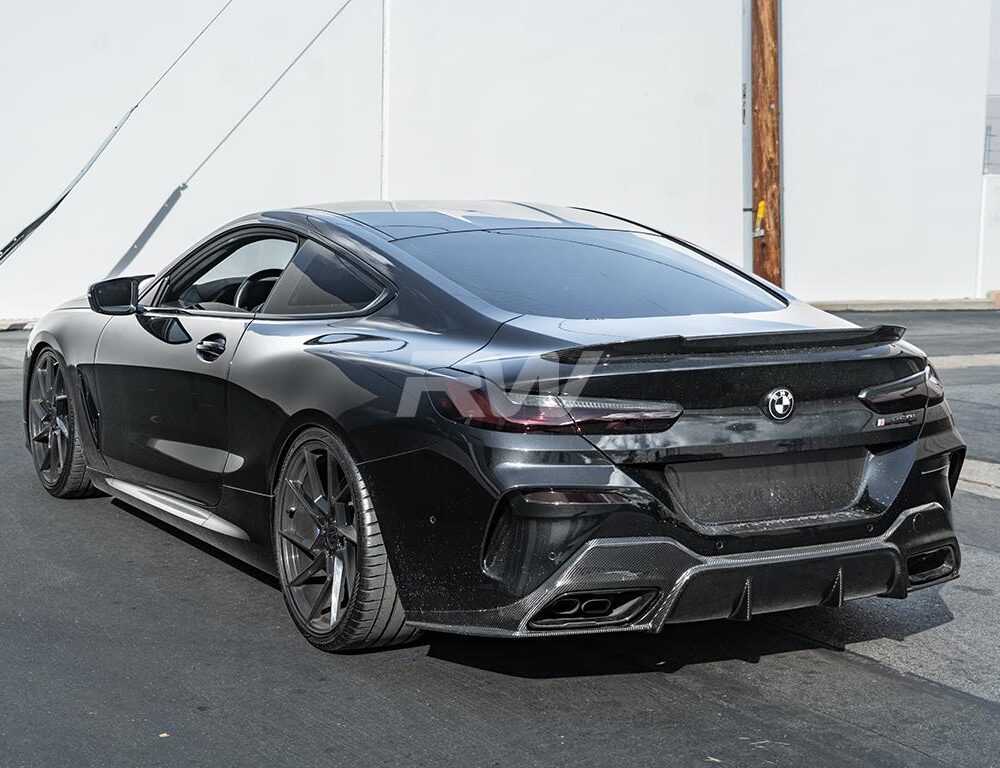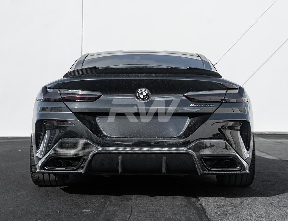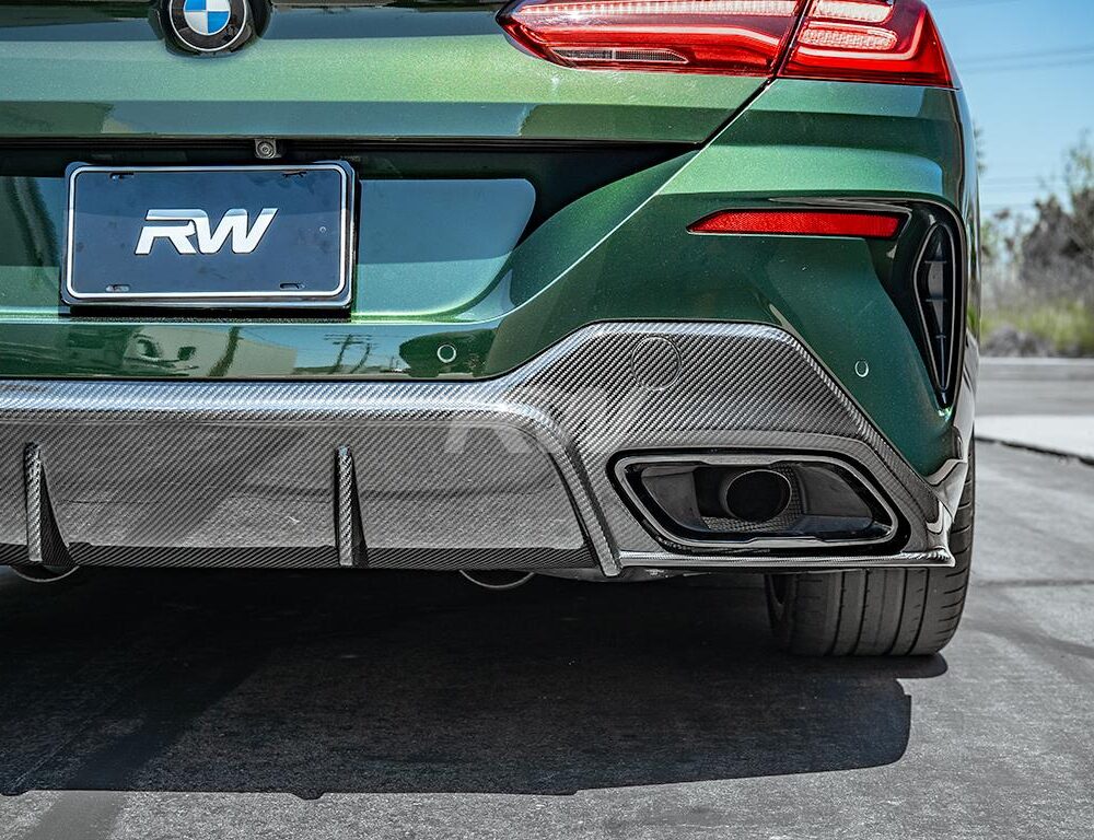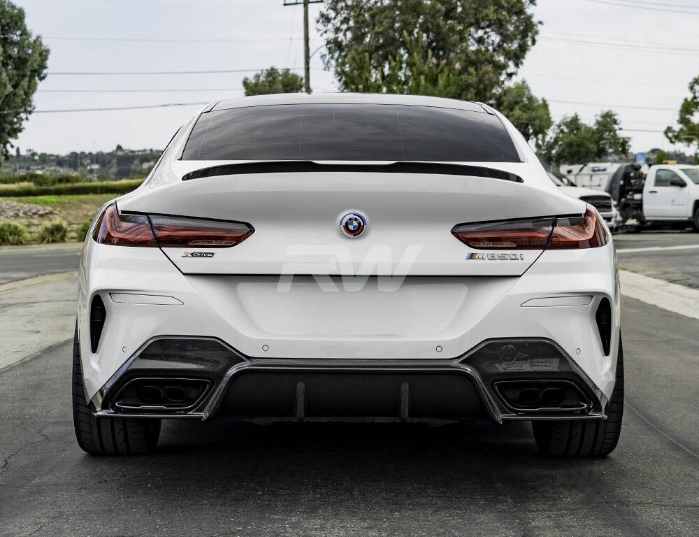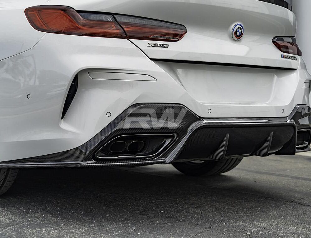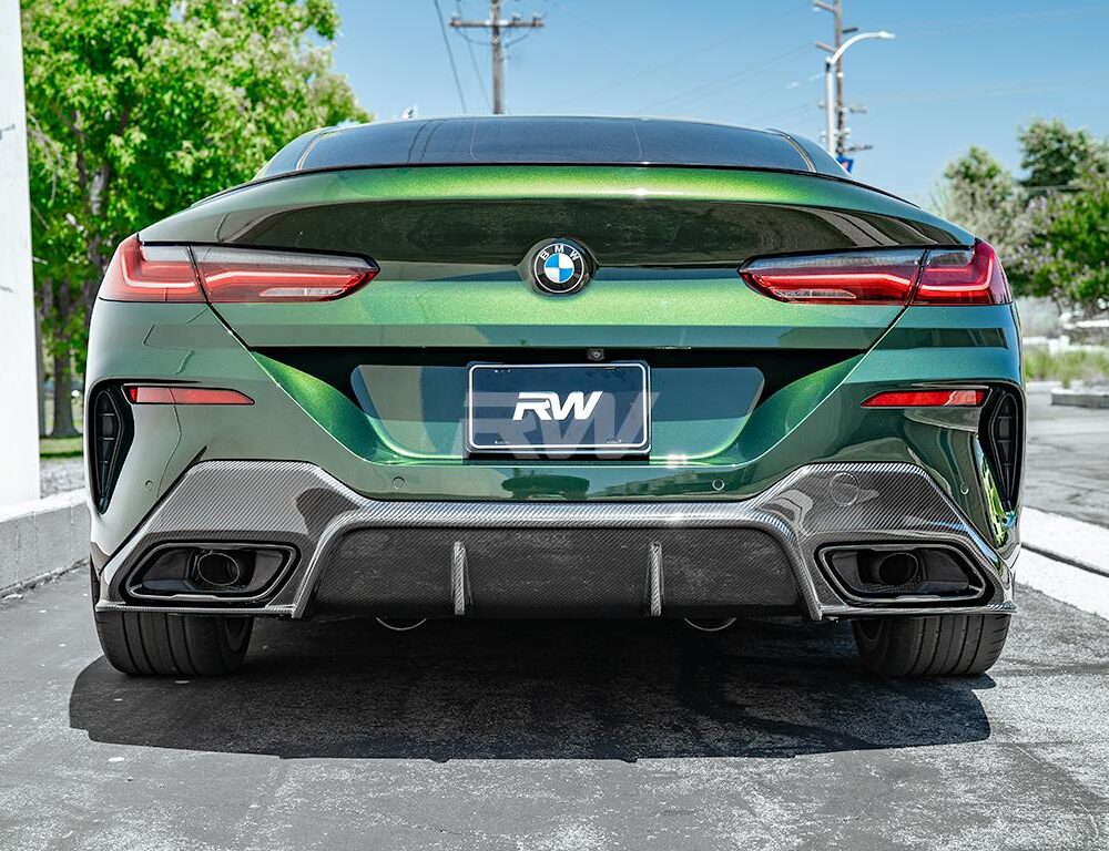 RW Carbon brings a great new carbon fiber rear diffuser option for our BMW G14 G15 840i M850i 8-Series customers. This 100% Dry Carbon Fiber 3D Style Rear Diffuser provides a huge improvement over the factory plastic diffuser. Made with genuine dry carbon fiber, you can expect a more durable and higher quality part than traditional carbon fiber. Each and every one of our pieces including this full carbon fiber 3D Style diffuser are clear coated for a high gloss finish that will not only look great, but will help to protect your diffuser out on the road. This product is backed by our fitment and quality guarantee so you can be assured that you’ll get a piece you will love. If you have any more questions, please feel free to reach out to us.