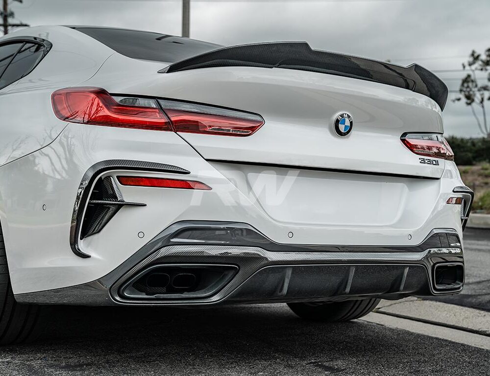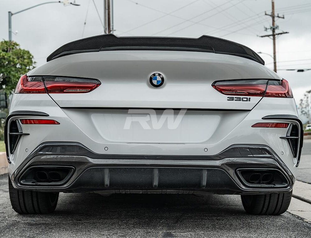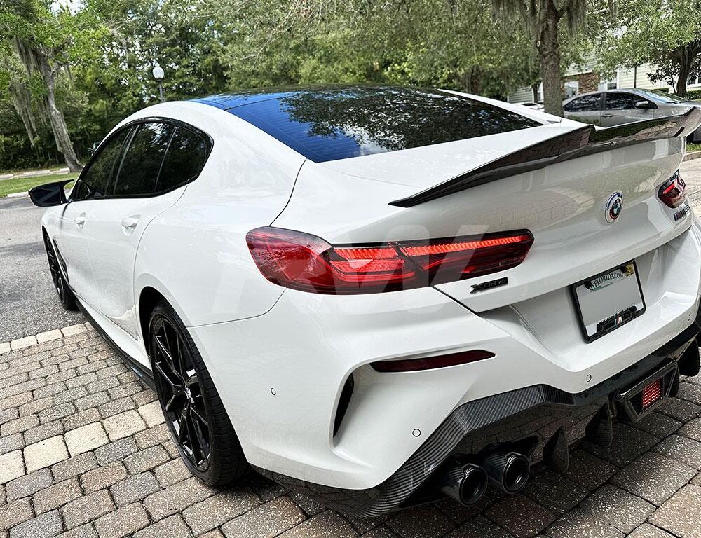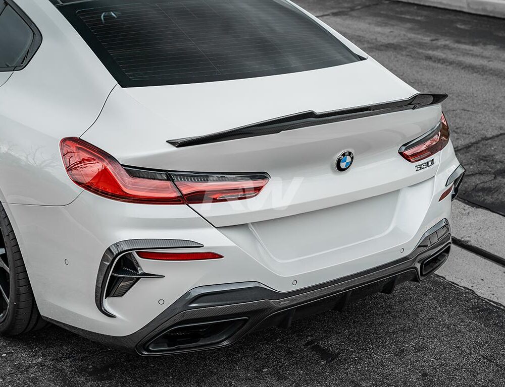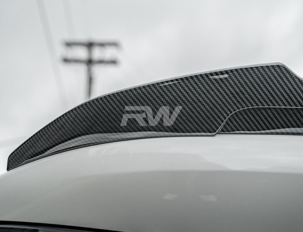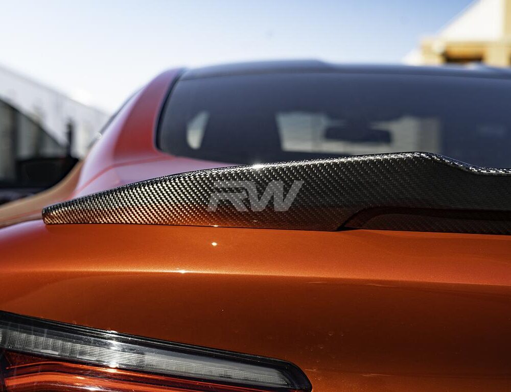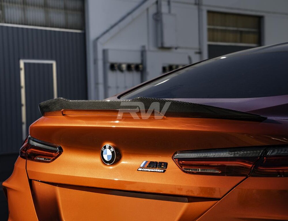 Level up your carbon game with a GTX G16/F93 carbon fiber trunk spoiler from RW! This GTX trunk spoiler is made with RWCs 2×2 full carbon fiber construction that perfectly matches with any other items you source from us. Installation can be completed by most enthusiasts and just requires 3M double sided tape and adhesion promoter (opt for this upon checking out). Installation is 100% reversible is you choose to remove it down the line and will not cause damage to your vehicles trunk or paint. Each one is quality checked and shipped at our Southern California facility prior to shipping around the world. Distinguish your gran coupe 8 series or M8 from the others on the road by adding a GTX carbon fiber rear trunk spoiler from RW Carbon!
