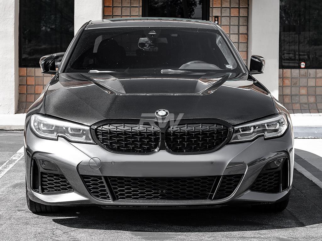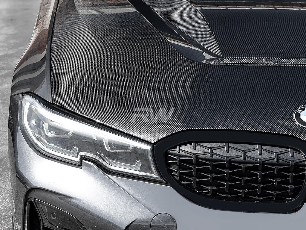 This DTM carbon fiber hood designed for your 2019+ G20 3-Series provides a lighter and more aggressive appearance when compared to your factory hood. This product offers a straightforward bolt-on installation, requiring no special modifications to your BMW. Each DTM hood is meticulously crafted from carbon fiber, ensuring a perfect match with the aggressive aesthetics of any RW or OEM components you have already installed on your car. Our carbon fiber hood is backed by RW Carbon’s unwavering commitment to superior fitment and quality, ensuring that you showcase a piece you can take pride in. Unlike other options on the market that deviate from OEM standards, our hoods come equipped with integrated studs for a secure and OEM-like mounting experience.