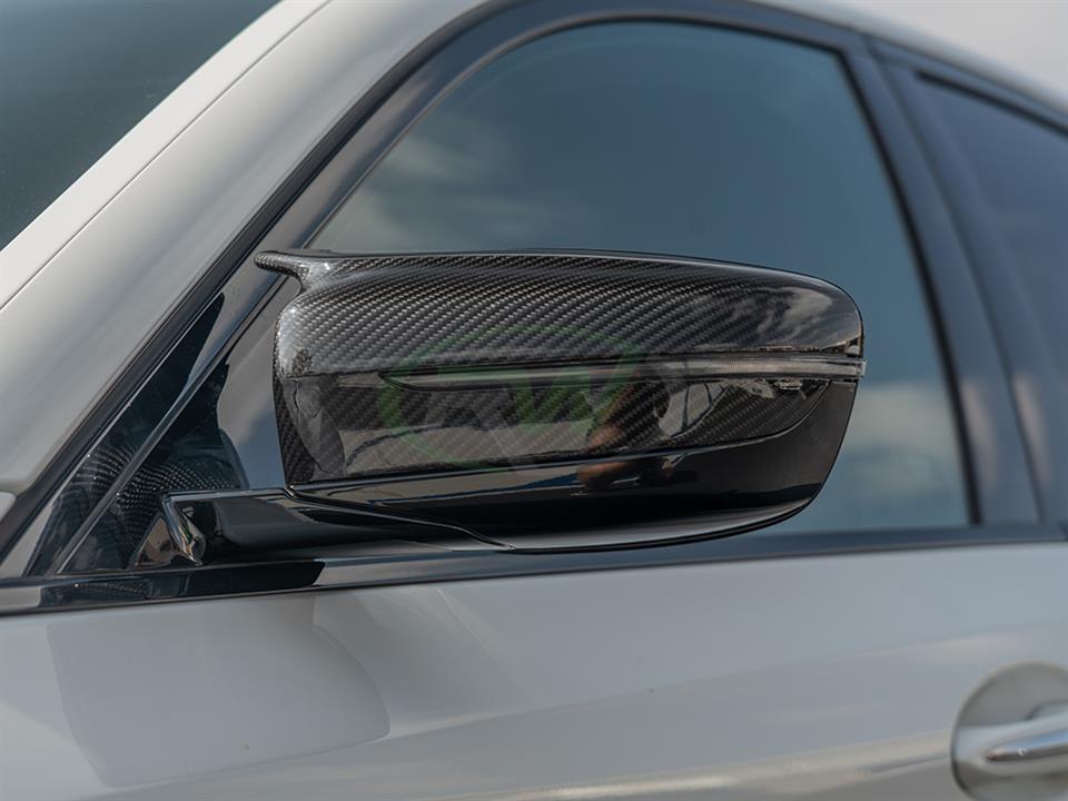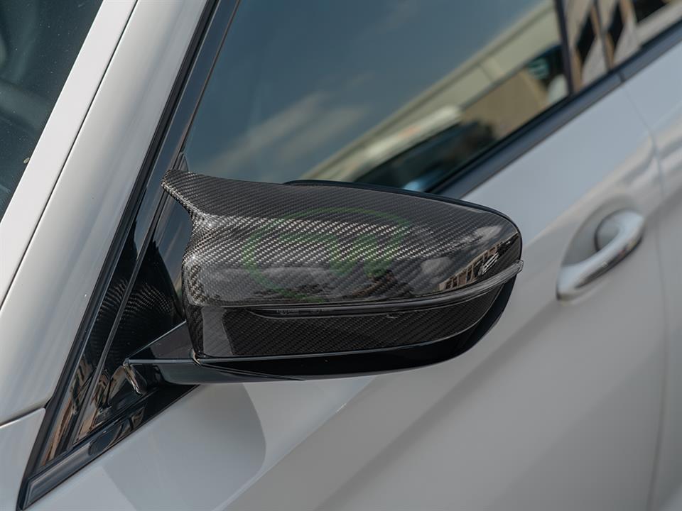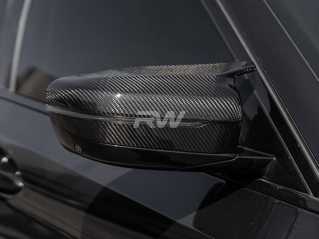 Skip to contentNew for your BMW our M Style Carbon Fiber Mirror Cap Replacements. Our M Styled Mirror Caps will fit the BMW G14, G15, G16, G20, G22, G23, and G30 models. These mirror cap replacements offer a more M styled look over the stock mirror caps. These mirrors are extremely popular among other BMW owners since they give your BMW a more sporty and aggressive touch. Our mirror caps are made using 100% carbon fiber so not only are they super lightweight, but the also very strong and durable. These caps are backed by a fitment and quality guarantee to ensure proper fitment on your BMW.