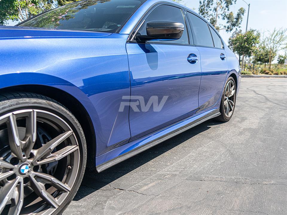 Enhance the side profile of your 3-Series with these BMW G20 3-Series K Style Carbon Fiber Side Skirt Extensions. These side skirts are the perfect addition for you, as the eloquently spice up your BMW on both sides. They are also a key piece to complete your carbon fiber kit if you already have one of our front lips and diffusers. All of our carbon fiber at RW Carbon is backed by a quality and fitment guarantee to ensure that you always receive the best quality product that you can get on the market. Installation is fairly simple, by just applying self tapping screws into the underside of your side skirts and you are good to go. If you have any more questions about our G20 K Style side skirts, please contact us.