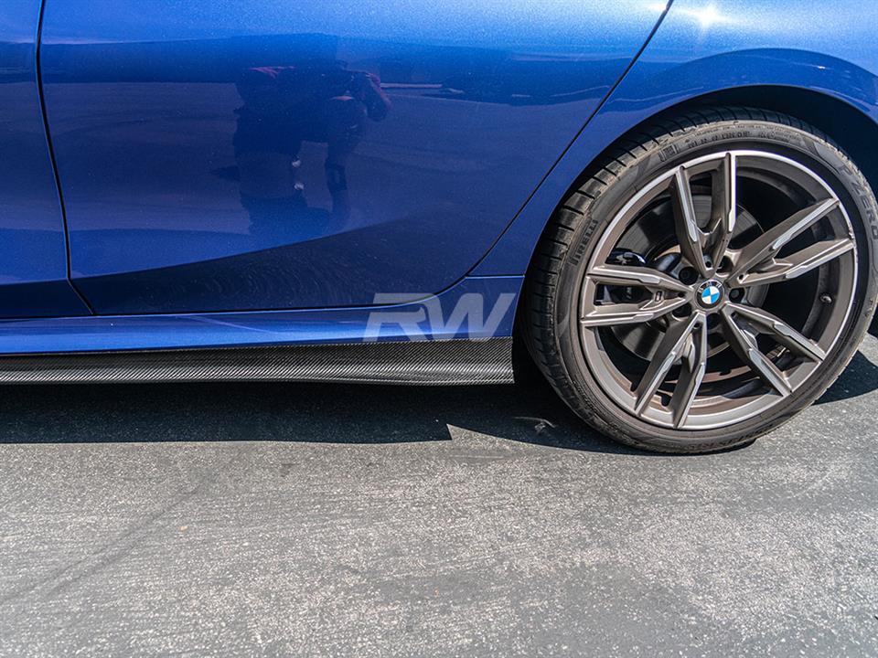 Professional installation is always recommended for RW Carbon’s products including these BMW G20 carbon fiber side skirt extensions. Installation requires self tapping screws and 3M tape and promoter. For further assistance please contact us today. RW Carbon can also install these!