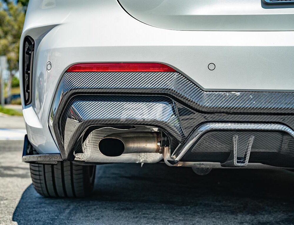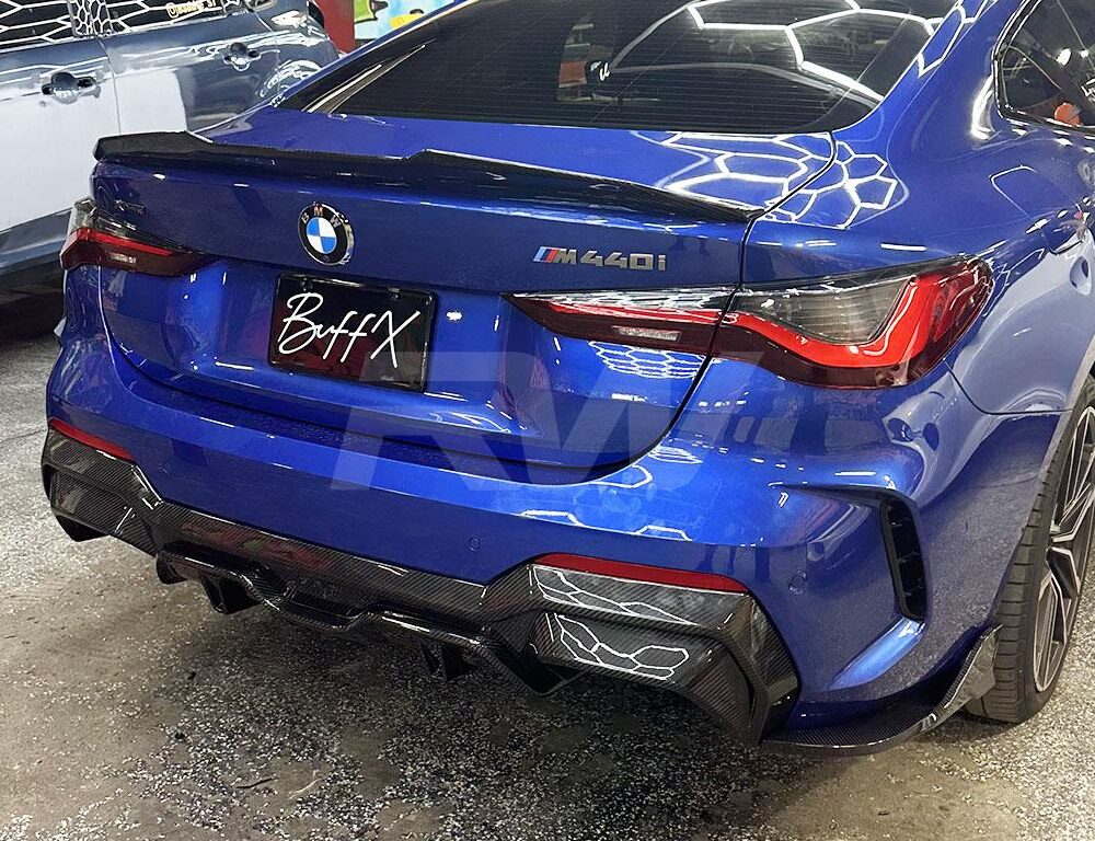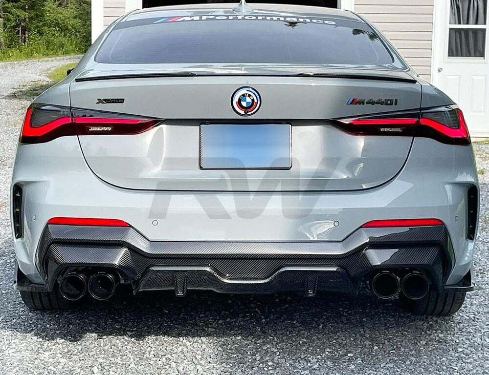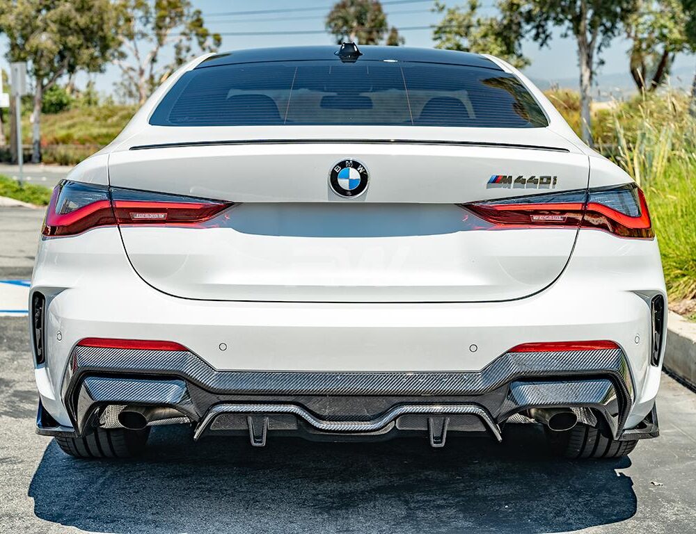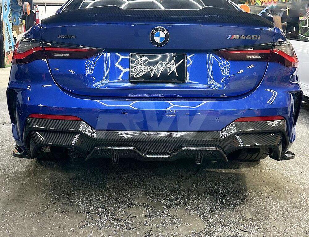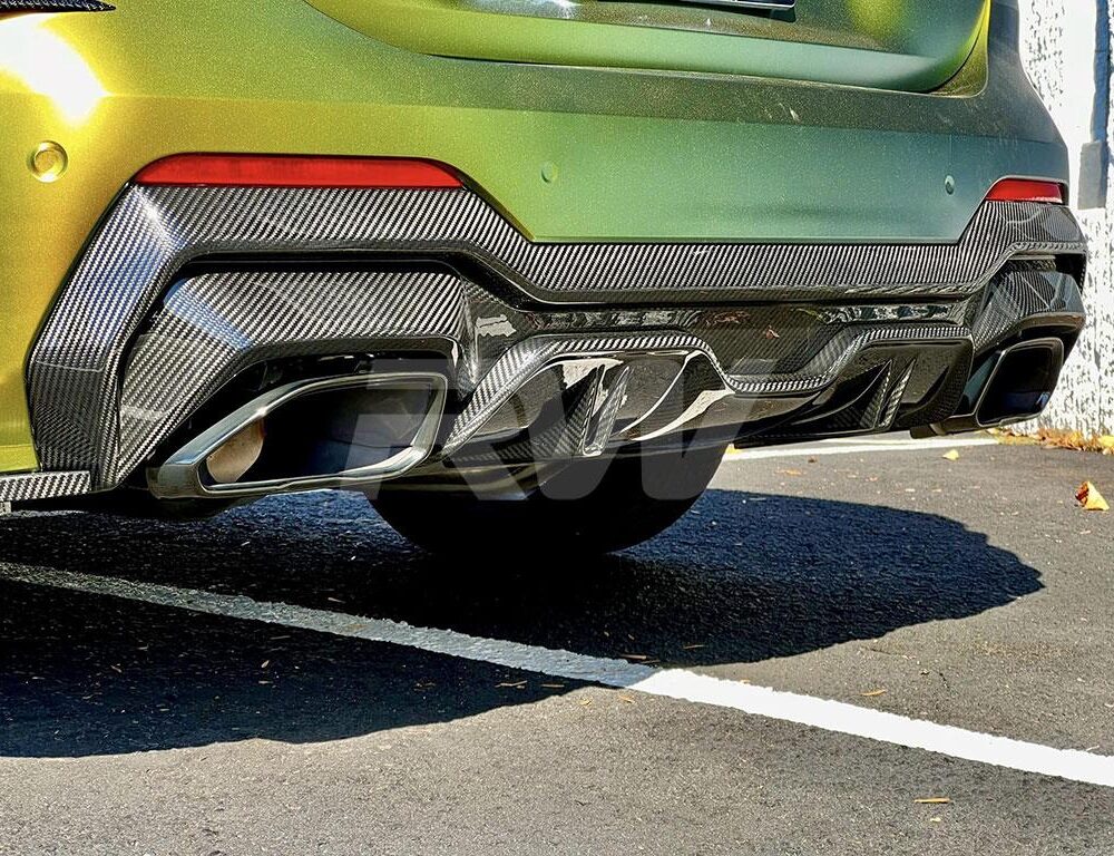 Start or finish off your BMW G22 or G23 4-Series carbon fiber journey with this DTM Carbon Fiber Diffuser from RW Carbon. This diffuser is crafted from genuine dry carbon fiber in a 2×2 weave pattern that will nicely match any other carbon fiber parts you have on your car from RW Carbon. To ensure that this diffuser has a nice finish that stands the test of time, we complete it with a thick and high-quality clear coat. Installation is 100% bolt-on and attaches using the same mounting points as the OEM diffuser. Our carbon fiber G22/G23 4-Series DTM diffuser is the perfect finish for an aggressive rear appearance. Choose RW Carbon for your 4-Series carbon fiber needs and receive a product you can be proud of to install on your vehicle.