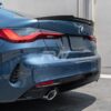 Achieve a modded appearance without breaking the bank with this M4 Style Full Carbon Fiber Trunk Spoiler made for the G22 4 series and G82 M4. Featuring flawless 100% carbon fiber weave and superb fitment you can’t go wrong with this exterior styling upgrade. Each BMW G22 G82 Coupe M4 Style Full Carbon Fiber Trunk Spoiler features plug and play installation that doesn’t require you to cut any holes into your trunk, and simply installs using double sided tape. As your G22/G82’s first exterior mod or the last, this M4 full Carbon Fiber Trunk Spoiler is a great choice.