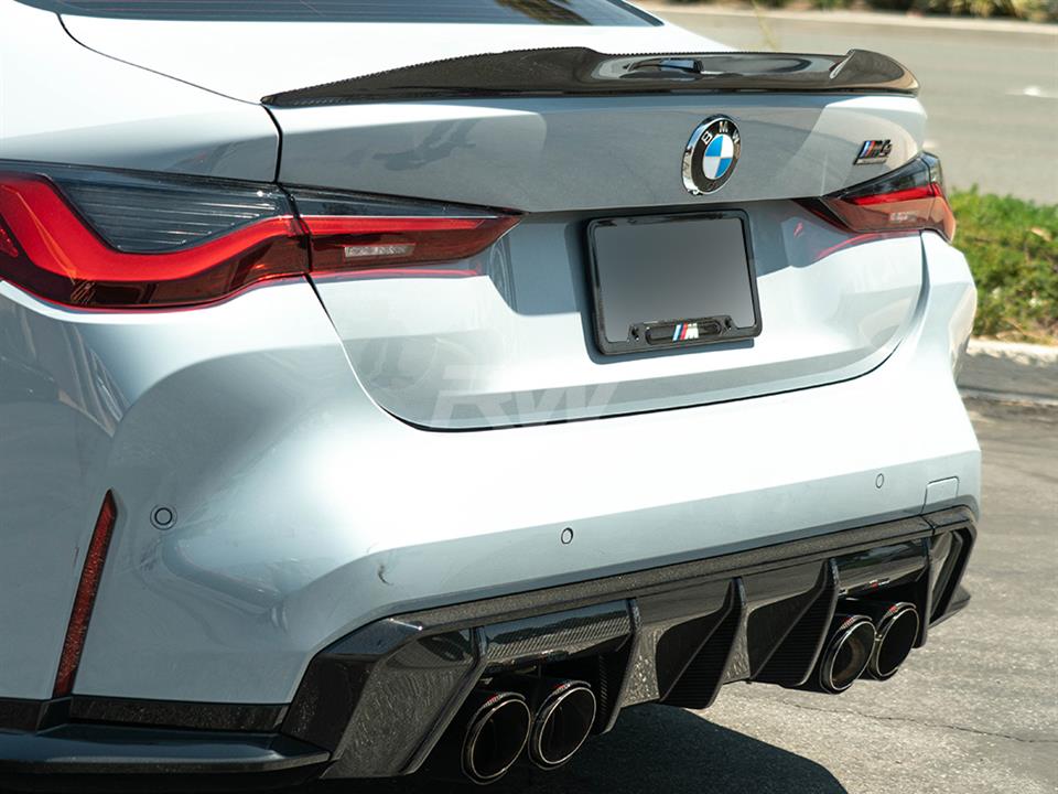 W Carbon is happy to introduce our RW Signatures Carbon Fiber BMW G22 4-Series and G82 M4 Trunk Spoiler. This trunk spoiler was designed in-house at RW Carbon tp bring you a unique style that can’t be found anywhere else. These trunk spoilers are made using high-quality carbon fiber fabric in a 2×2 weave pattern so they will perfectly match your other RW Carbon fiber parts. This RWS CF trunk spoiler installs in minutes using 3M double side tape, which can be purchased from us. Fitment and quality are of course guaranteed by us and we quality check every spoiler before it ships worldwide. Be one of the first to rock this new RWS trunk spoiler on your BMW G22 4-Series or G82 M4. Contact us today if you have any questions.