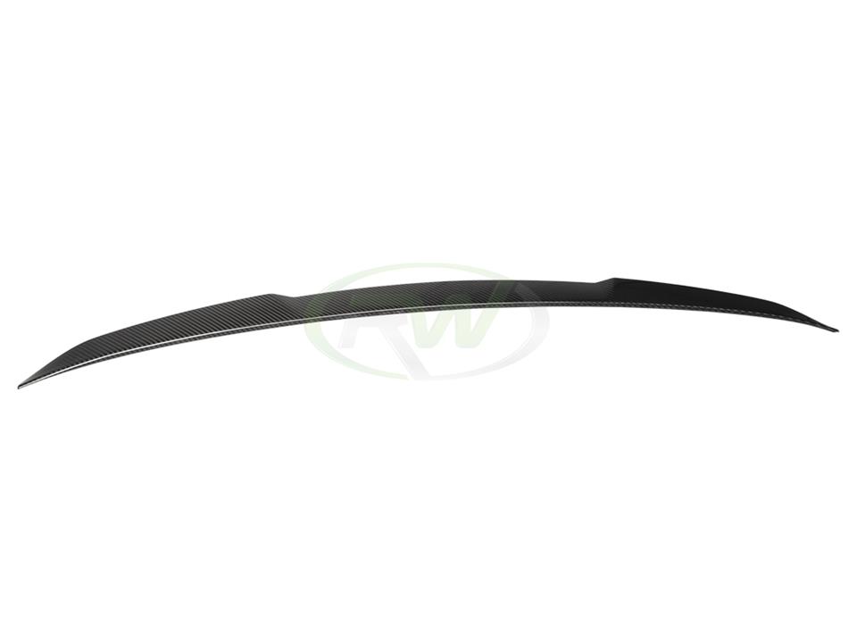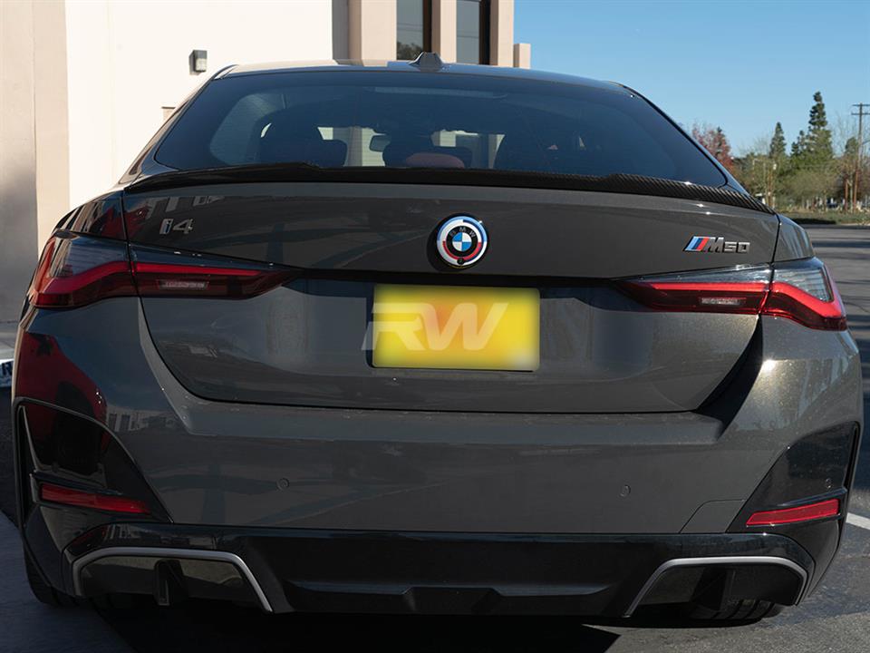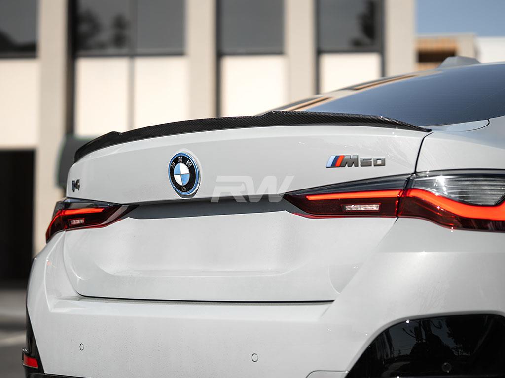 Transform rear-end appearance of your BMW G26 Gran Coupe 430i, M440i, or i4 with this DTM Full Carbon Fiber Trunk Spoiler from RW Carbon. This trunk spoiler fits all 2021+ BMW G26 4-Series and 2022+ i4 and i4 M50 models. This product features top-of-the-line genuine dry carbon fiber and a great fitment to offer an unparalleled appearance and quality. Each BMW G26 / i4 DTM Carbon Fiber Trunk Spoiler features a plug-and-play installation that doesn’t require you to modify your trunk by easily installing it with the help of double-sided 3M tape. Each spoiler is coated in a clear coat that is polished to a mirror finish and each one is quality checked several times to ensure you received a flawless looking product.