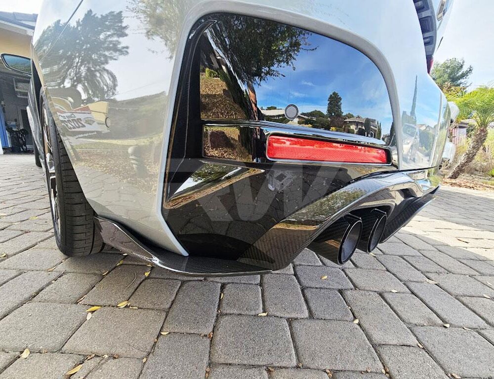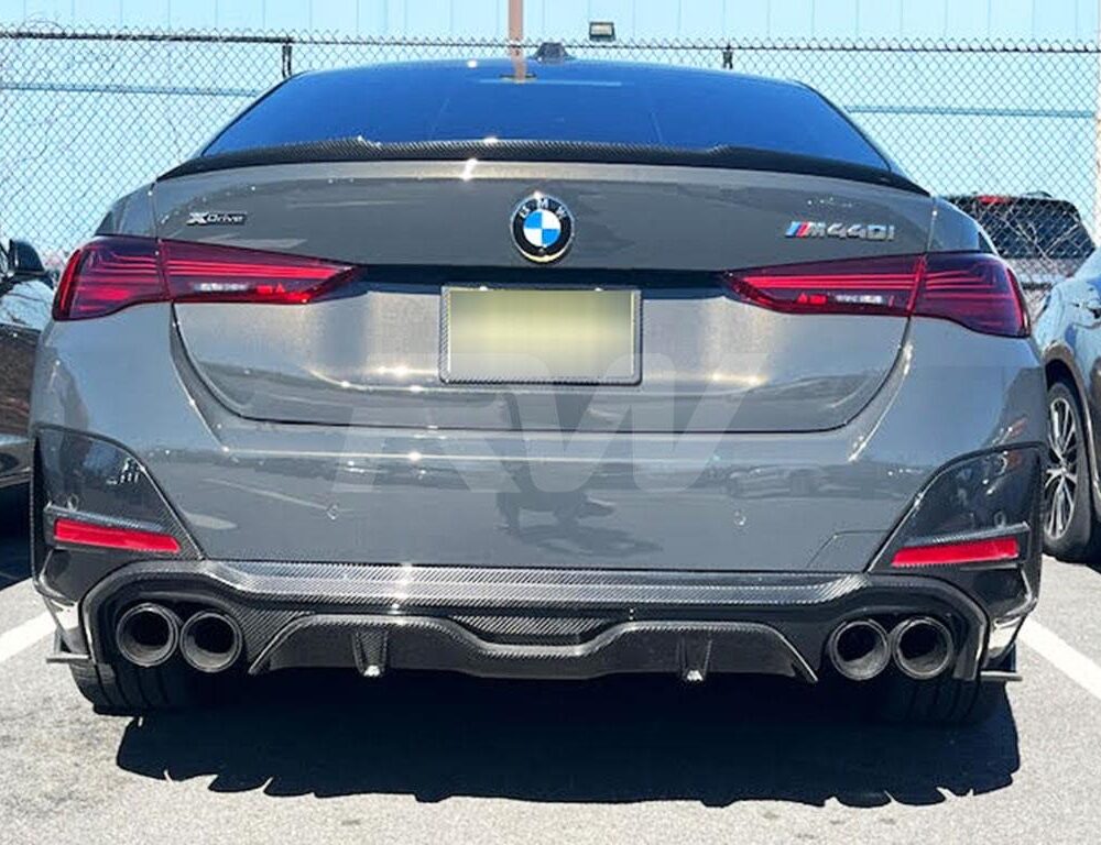 Begin or end off your carbon fiber journey of your BMW G26 4-Series M-Sport with this Carbon Fiber Diffuser. This diffuser is crafted from genuine 100% dry carbon fiber that will nicely match any other carbon fiber parts you have on your car from RW Carbon. The full carbon fiber is a stronger and better-looking weave that will make a difference on the road. To ensure that this diffuser has a nice finish and does not fade or chip we complete it with a thick and high-quality clear coat. Installation is 100% bolt-on by simply unbolting your factory diffuser and mounting the new one using the same mounting points as OEM. Our carbon fiber G26 4-Series diffuser is just the right piece to finish the back end of the car. Choose RW Carbon for your 4-Series carbon fiber needs and receive a product you can be proud of. WILL require aftermarket quad exhaust for the M440i (3.5 inches or less per tip).