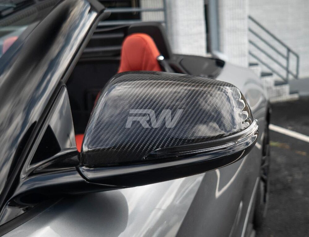 Professional installation is always recommended for RW Carbon’s products including these BMW G29 Z4 carbon fiber mirror replacement caps. These mirror caps replace your existing mirror caps and use existing mounting locations.