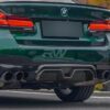 This CS style carbon fiber rear diffuser is for the 2017-2020 5-Series with the M Sport package, which includes the 530i, 530e, 540i, and M550i. This CS Style Diffuser is made using genuine carbon fiber and will perfectly match any other G30 RW Carbon Fiber parts and/or accessories. Always encased in a protective clear coat, you can expect this part to stand the test of time. This diffuser requires the removal of the rear bumper for installation so we highly recommend that you have either us at RW Carbon install it or another professional shop. Take your G30 from stock to extraordinary in a matter of a couple of hours with a new RW CS Style Carbon Fiber Diffuser.