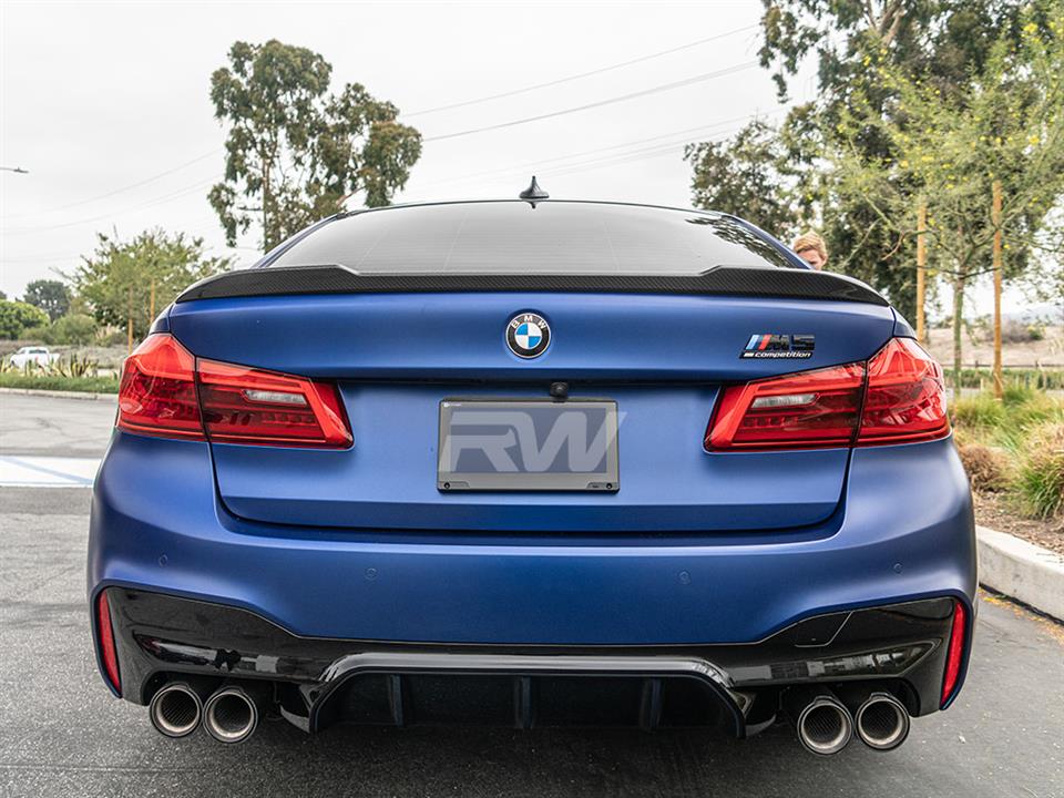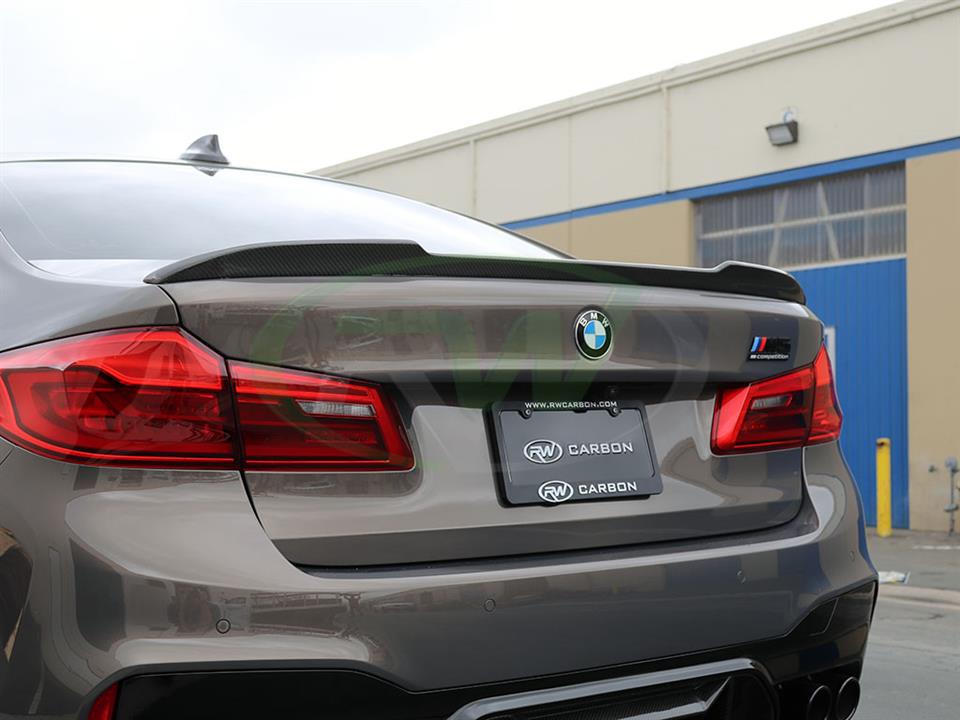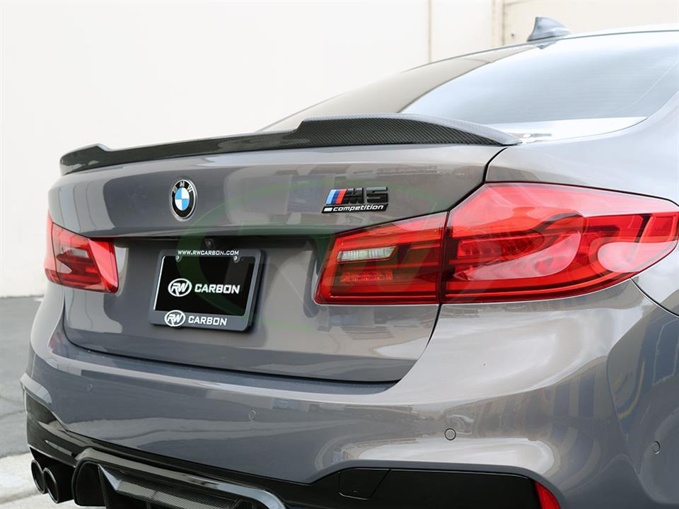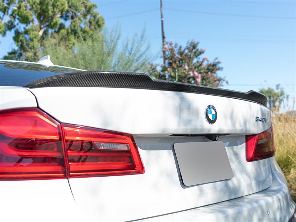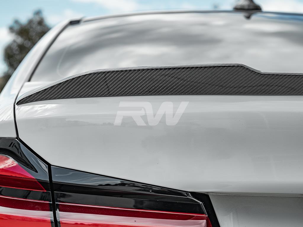 Give your BMW F90/G30 an updated look today with one of RW Carbon’s CS Style Carbon Fiber Trunk Spoilers. These trunk spoilers are made using real dry carbon fiber and then are meticulously sprayed with a high quality clear coat to give your spoiler a beautiful high gloss finish. Every CS Style F90/G30 trunk spoiler that we ship out is quality checked to ensure you receive a great looking product. Installation for this product is relatively simple only requiring 3M tape, which can be purchased during checkout. Apply the tape to the backside for the spoiler and press and hold it into place. If you have questions, please do not hesitate to contact us.