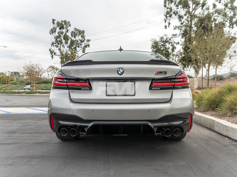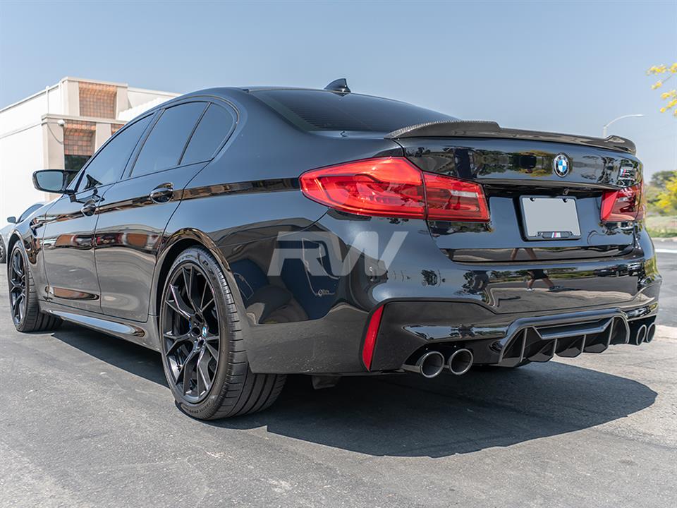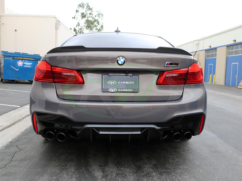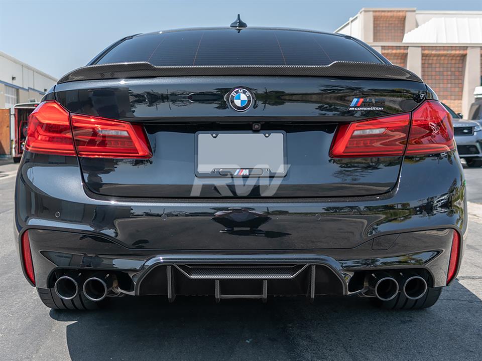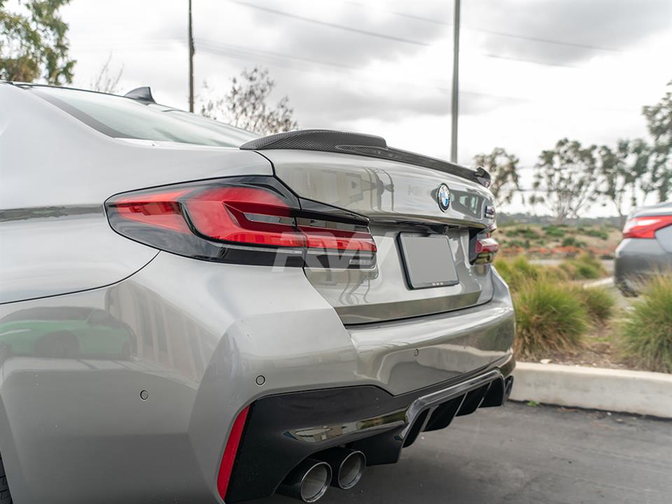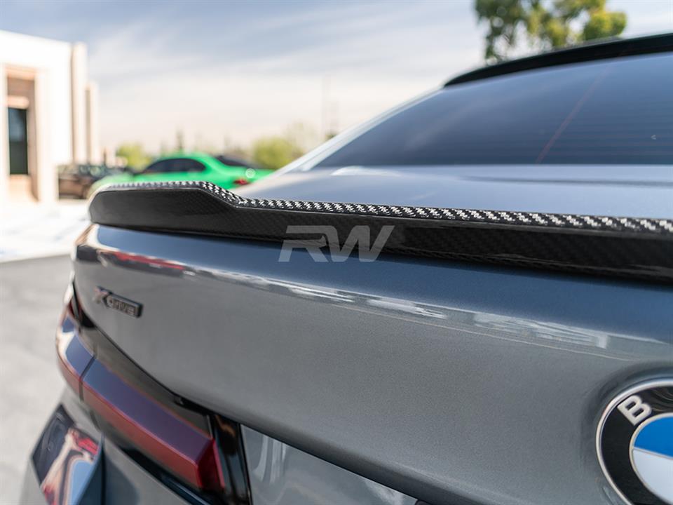 Give your BMW F90/G30 an updated look today with one of RW Carbon’s CS Style Carbon Fiber Trunk Spoilers. These trunk spoilers are made using real dry carbon fiber and then are meticulously sprayed with a high quality clear coat to give your spoiler a beautiful high gloss finish. Every CS Style F90/G30 trunk spoiler that we ship out is quality checked to ensure you receive a great looking product. Installation for this product is relatively simple only requiring 3M tape, which can be purchased during checkout. Apply the tape to the backside for the spoiler and press and hold it into place. If you have questions, please do not hesitate to contact us.