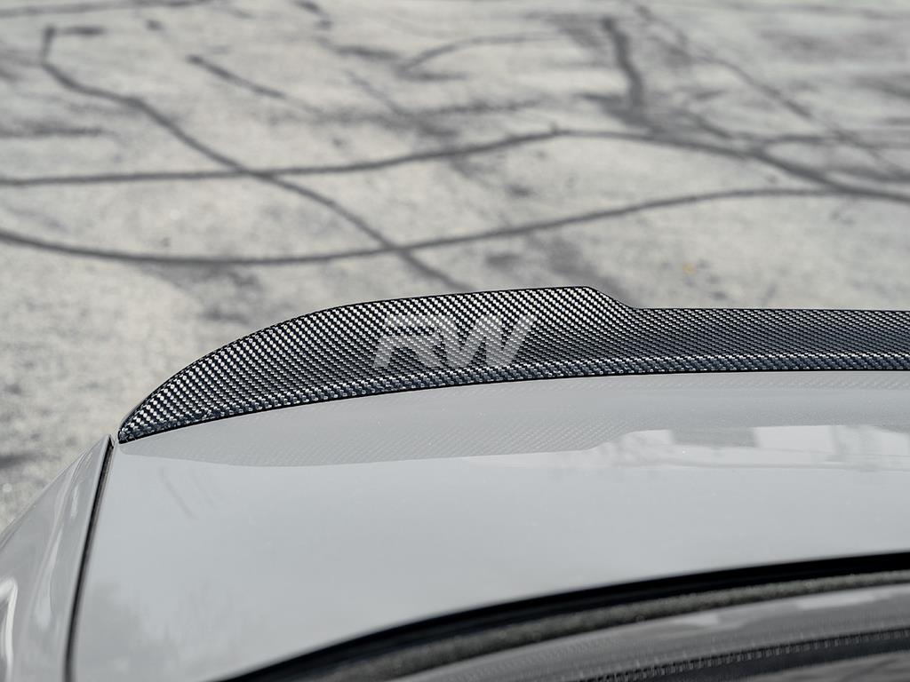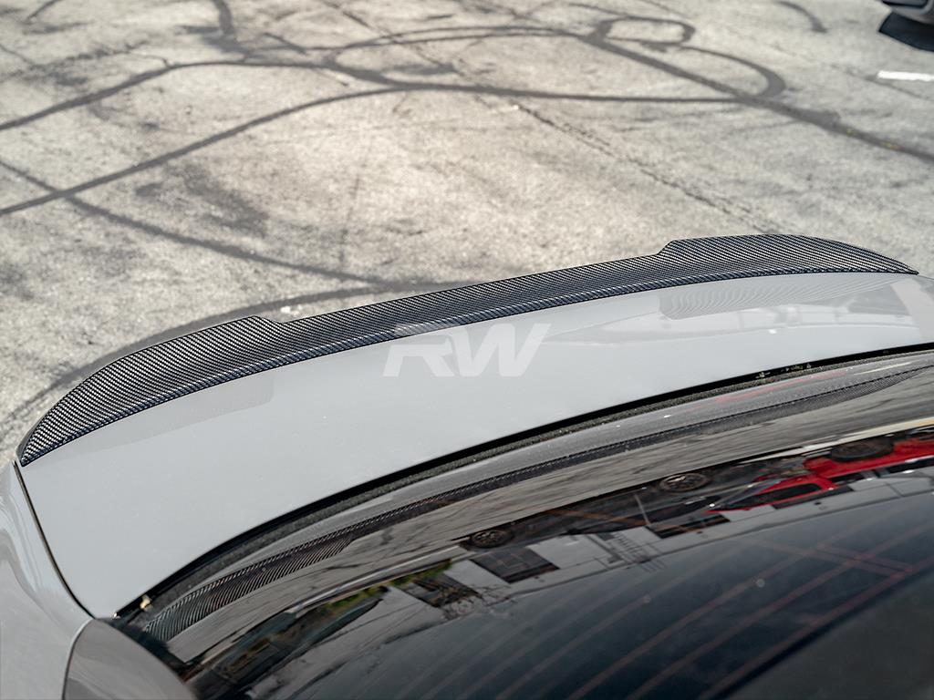 Installation of this trunk spoiler is relatively simple only requiring double sided 3M VHB tape. To ensure good fitment, RW Carbon recommends that this trunk spoiler be installed either by us, or at a reputable body shop.