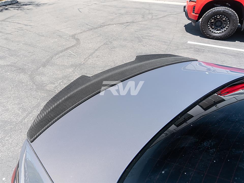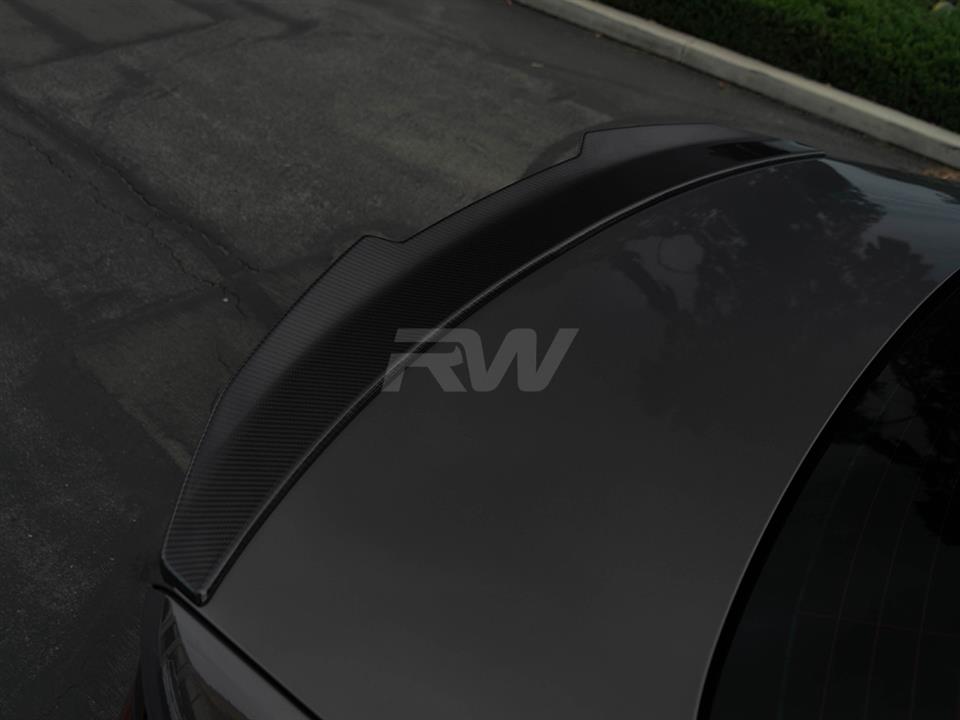 Installation of this trunk spoiler is relatively simple, only requiring double sided 3M VHB tape, which can be purchased during checkout. To ensure good fitment, RW Carbon recommends that this trunk spoiler be installed either by us, or at a reputable body shop.
