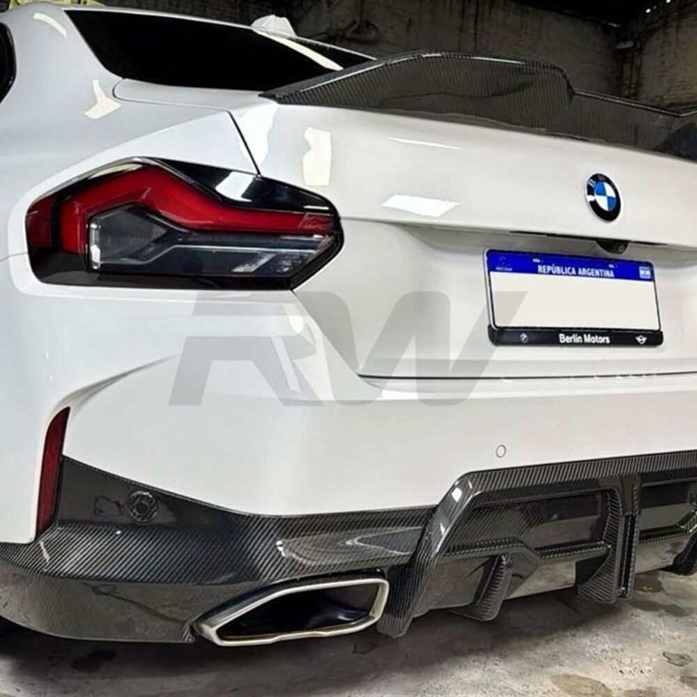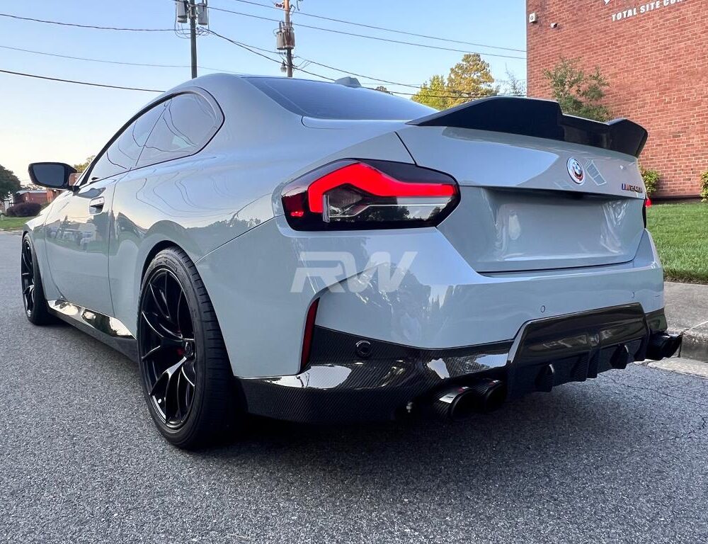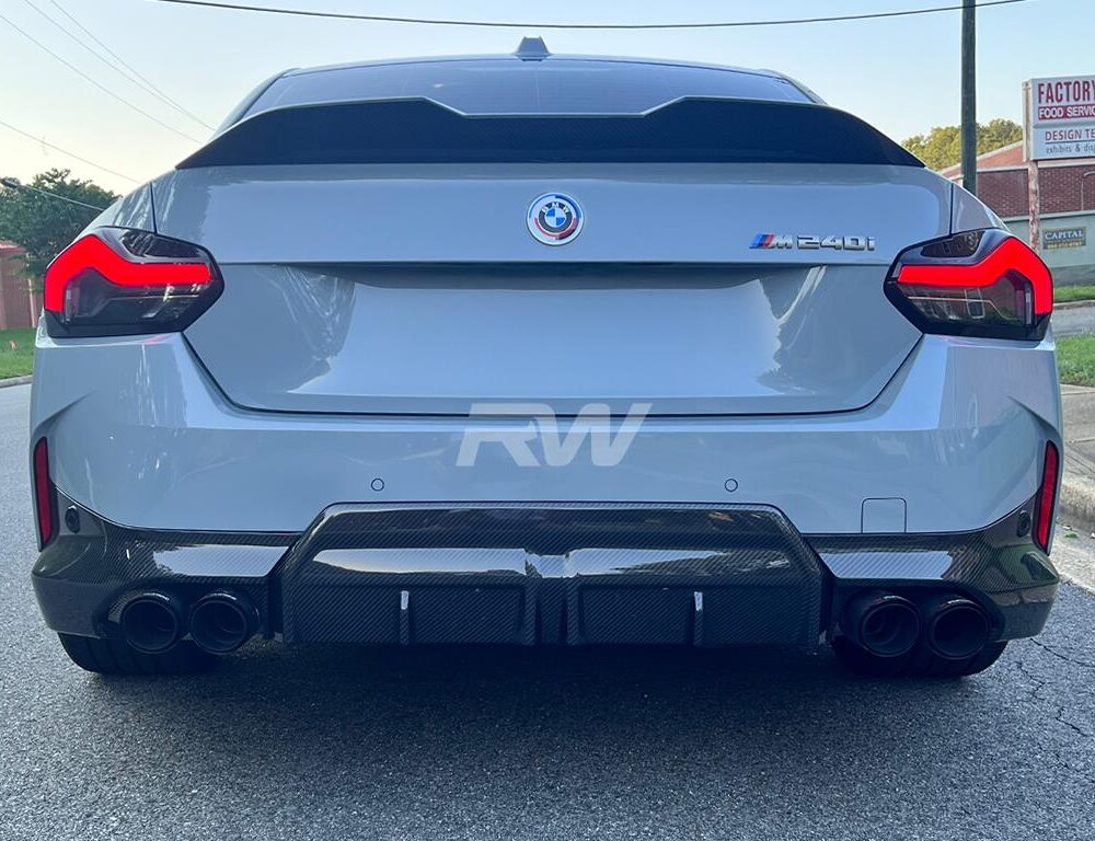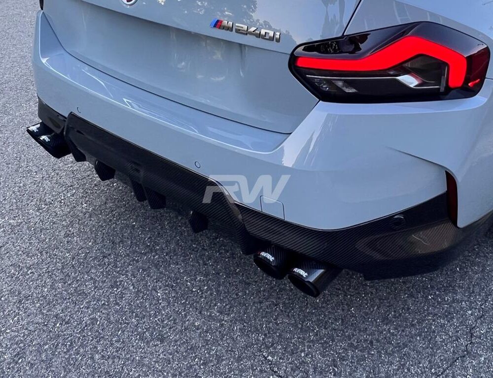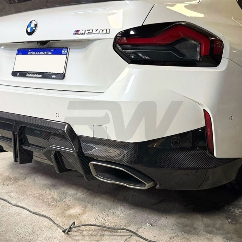Enhance your BMW G42 2-Series build with the all-new BMW G42 2-Series Carbon Fiber DTM Rear Diffuser from RW Carbon. Crafted from genuine 2×2 carbon fiber, it seamlessly complements any other carbon fiber parts you may have. After production, we finish each piece with a thick gloss clear coat to prevent fading over the years. Installation is straightforward, utilizing the same mounting points as OEM. Add style to the rear end of your G42 with RW Carbon’s carbon fiber diffuser, the perfect finishing touch for your G42 2-Series, or M240i M-Sport. Choose RW Carbon for quality products you’ll be proud to install on your vehicle.